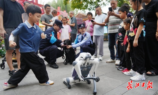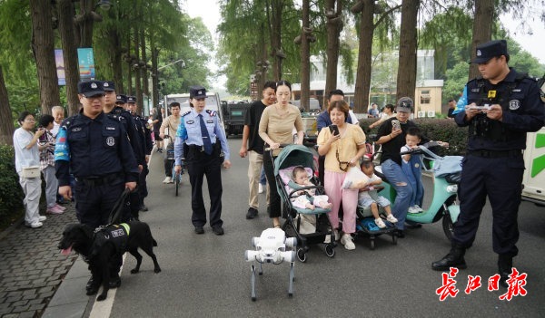 “以前觉得安全宣传严肃,今天看到两只‘警犬’搭档,连反诈都讲得可爱!”湖南游客周先生举着手机录视频,“我家孩子看到警犬高兴得不得了,又和机器犬学安全知识,很有意思!”带着儿子的游客胡先生笑着说:“这机器犬还会讲解东湖美景,指引道路,挺聪明的!”