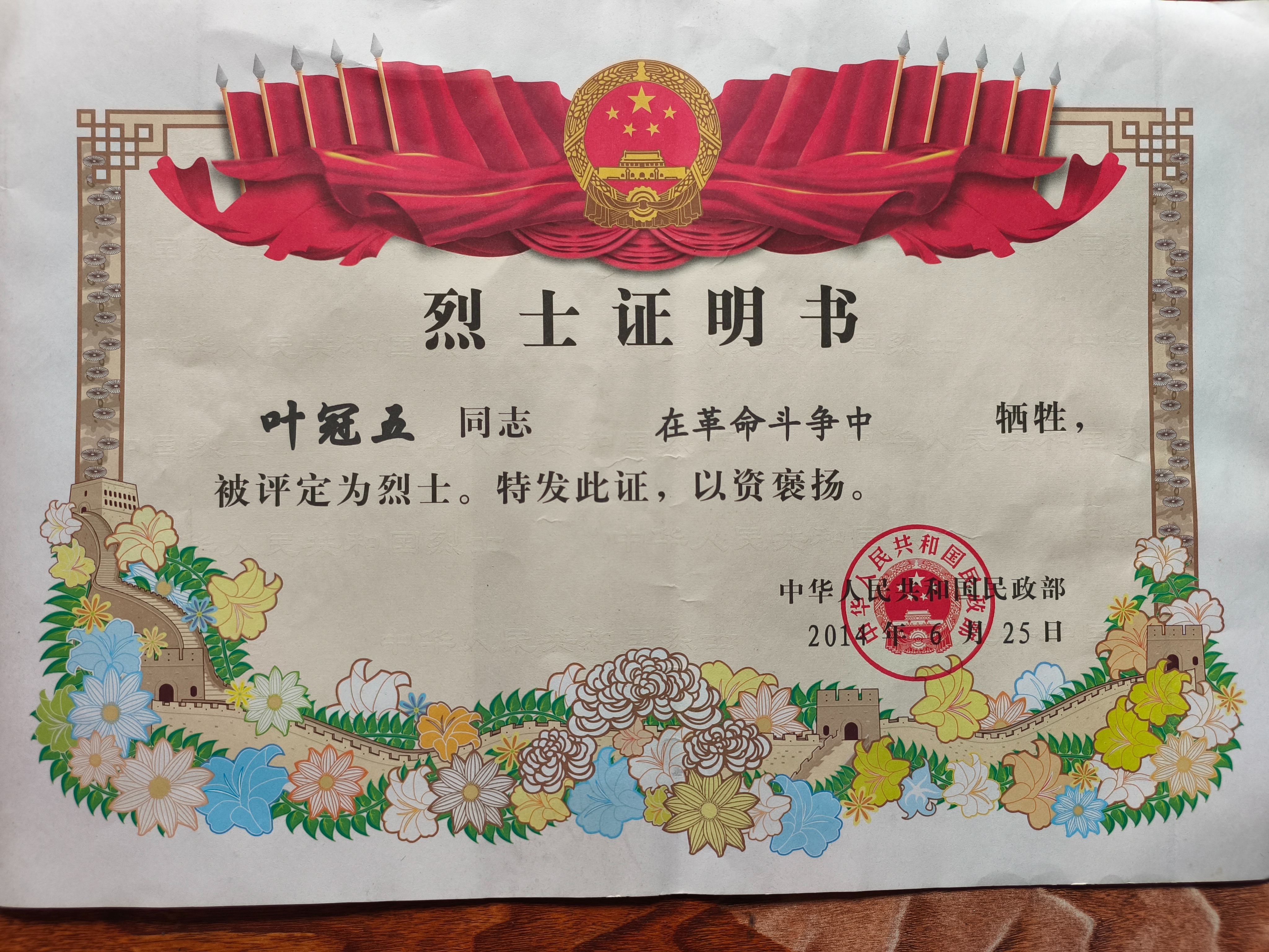 3个月后,叶盛桂出生,母亲靠国家定期发放的抚恤金独自将其抚养成人。母亲经常给他讲父亲的故事,希望他继承父亲的遗志。叶盛桂长大后考上大学,选择了国家军工建设急需的舰船设计专业,毕业后一直投身军工建设一线。“每逢遇到困难,父亲的遗言就会给我提供力量。”叶盛桂说。