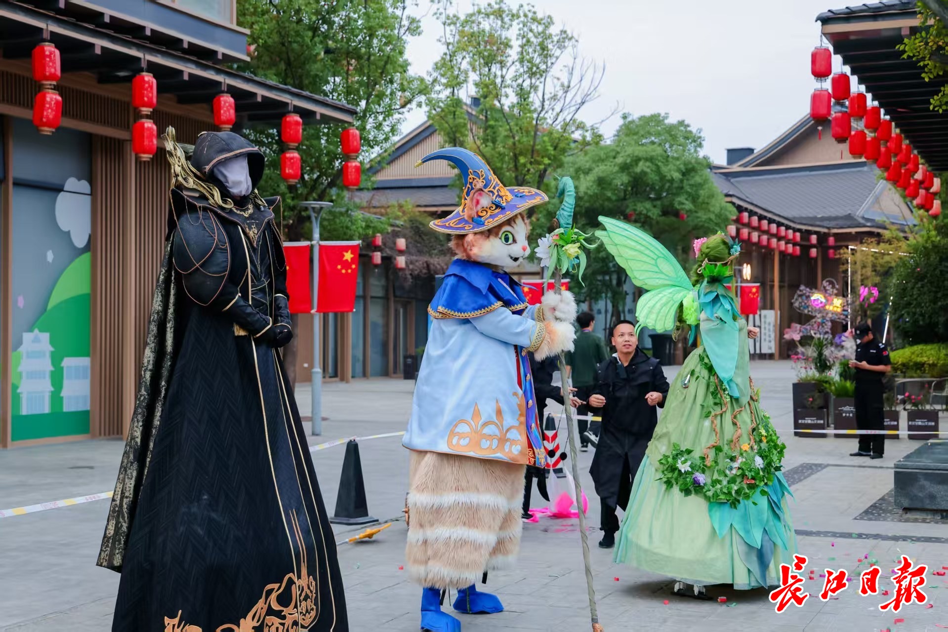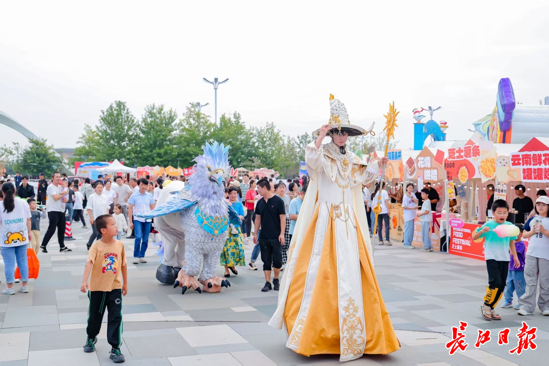 艺术节现场,国内首部魔法主题高跷巡游木偶剧《大魔法师》开启全国首演。饰演白袍巫师哈瑞的成都演员王鹏程透露,这场30分钟的巡游演出凝聚了团队两年的创作心血。“光是服装和道具研发就花了一年时间。这是我第七次来武汉演出,很喜欢这座城市的小龙虾,希望有机会能多停留几天,深入了解当地文化。”