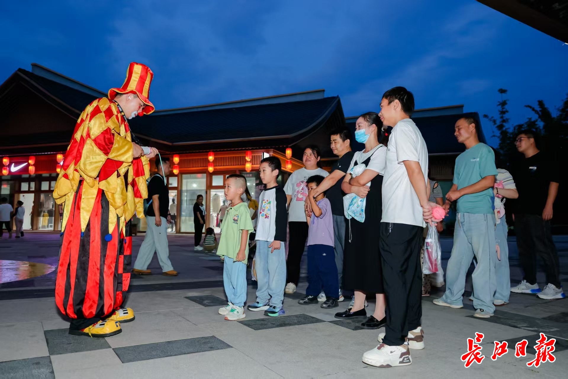 “今天特意带孩子来感受气氛,有吃有喝有玩,现场真是太热闹了!”家住江岸区的吴楚牵着孩子,在魔术表演区驻足良久。
