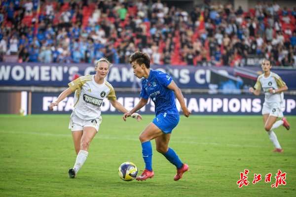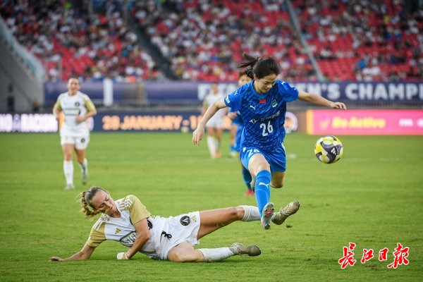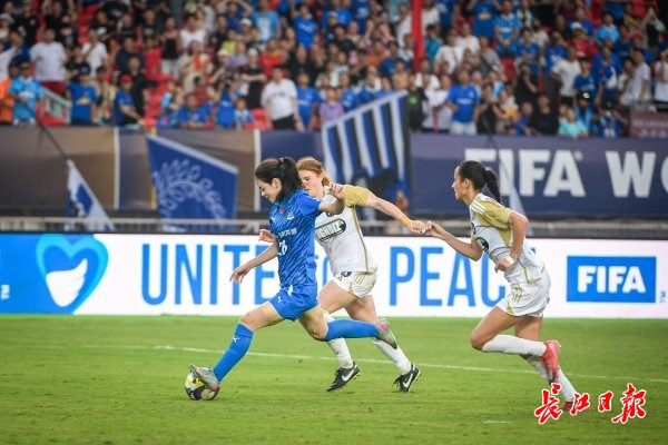长江日报大武汉客户端10月8日讯 8日,首届国际足联女足冠军杯首轮比赛在武汉体育中心举办,武汉车谷江大女足主场迎战奥克兰联女足,现场32000多名观众为球队加油呐喊。比赛时间第88分钟,武汉车谷江大女足26号队员姜晨璟进球。最终,江大女足以1:0战胜奥克兰联女足,晋级下一轮比赛。