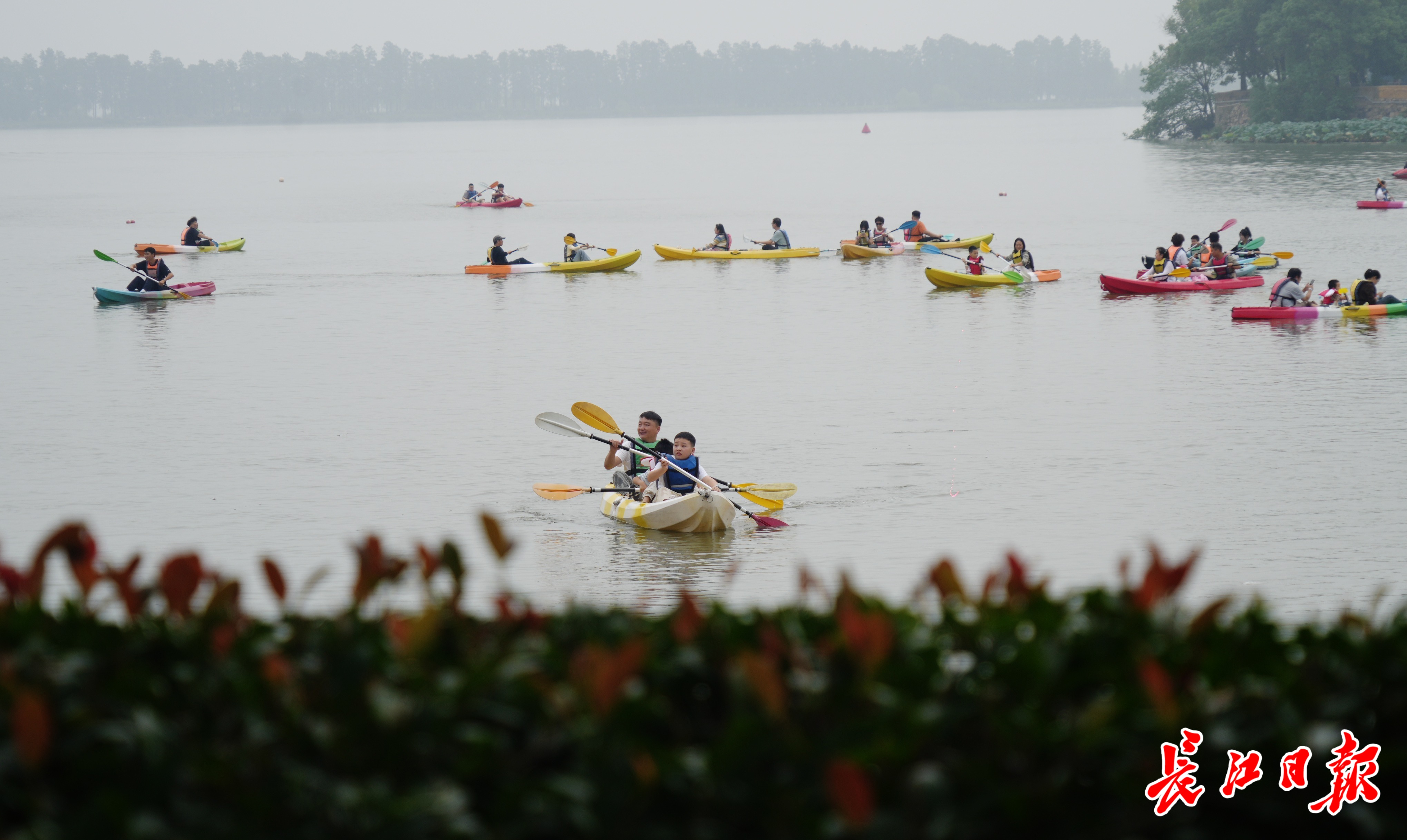 东湖水面,皮划艇“很忙”。 记者何晓刚摄