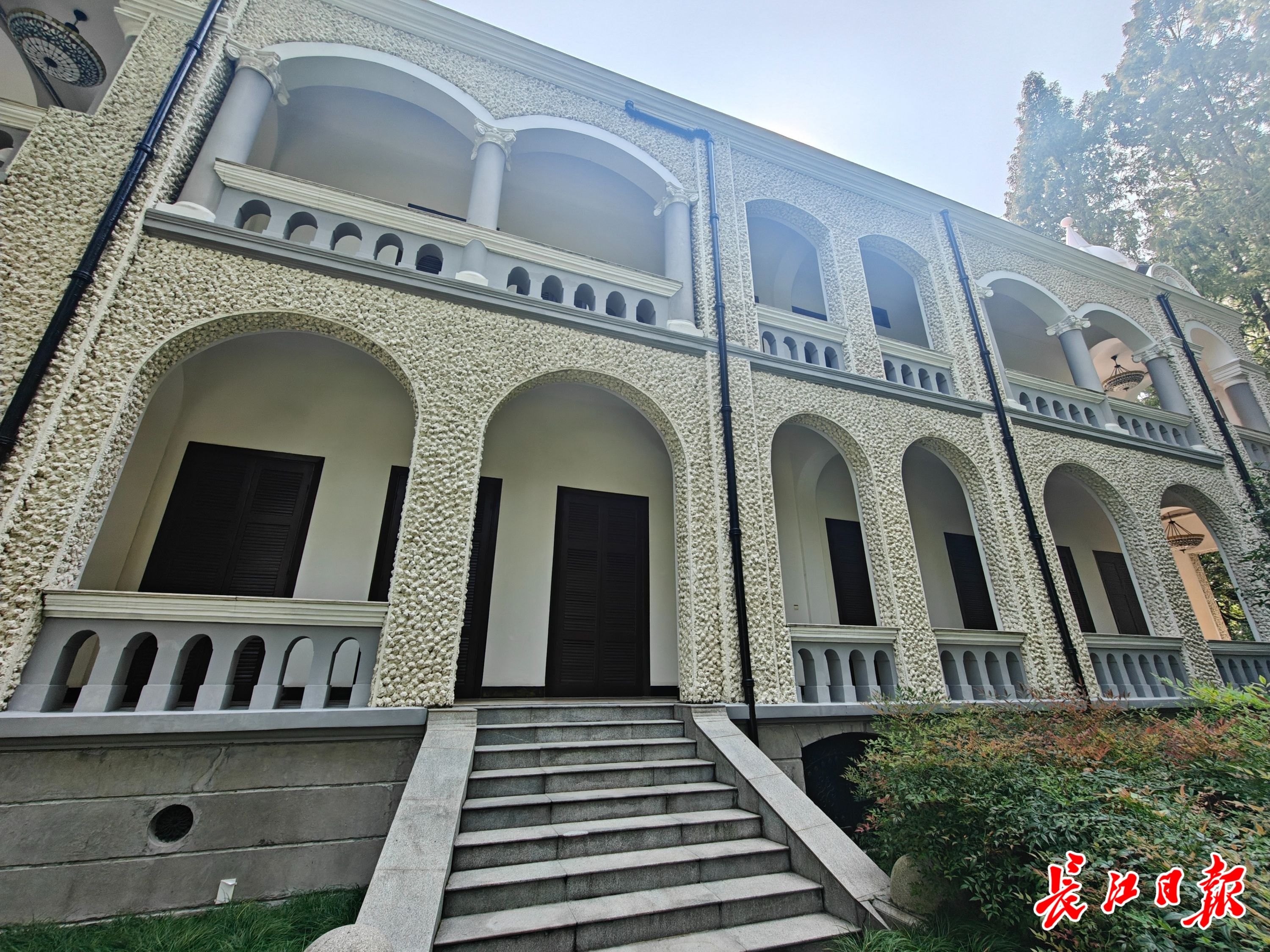 10月10日,记者来到武汉市人民政府探访,左手边就能看到这栋文物建筑。墙上的展示牌介绍,该建筑建于1895年,由德国建筑师设计,为高22.6米的两层砖木结构。红瓦四坡顶、圆形穹顶角塔以及环绕四周的阳台回廊,均展现出典型的德国维多利亚风格。