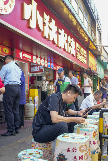 武昌大成路的小秋水饺馆吸引了众多游客体验武汉的过早文化。