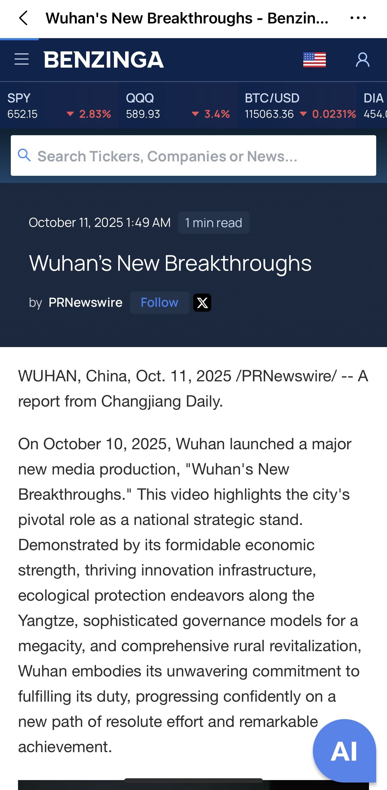 国际主流财经媒体BENZINGA转载