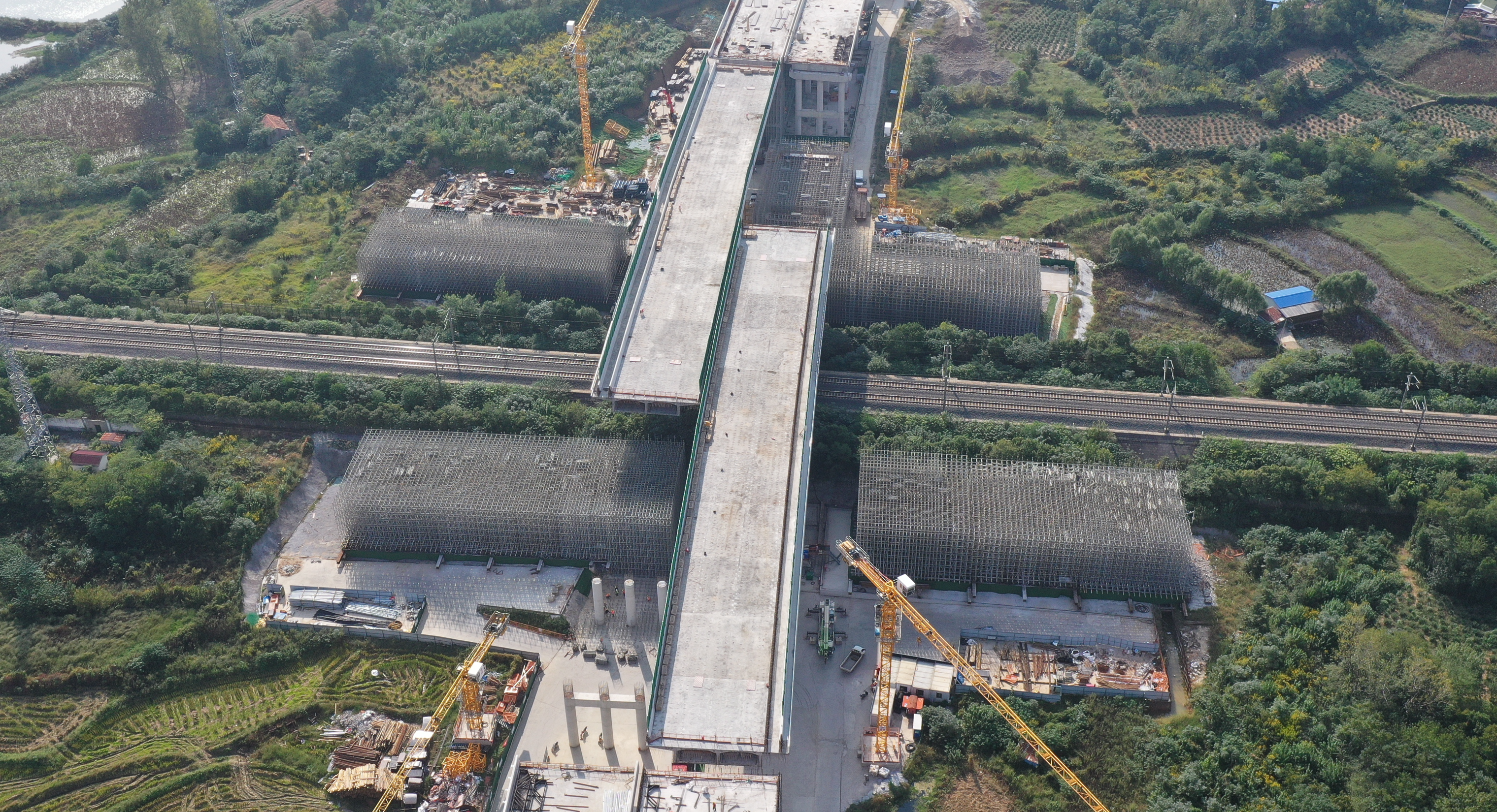 武天高速武汉至汉川段跨沪蓉铁路大桥位于汉川市马鞍乡。武天高速公司项目负责人介绍说,大桥转体施工采用“先预制、后转体”的一体化施工工艺,在铁路“天窗期”内完成同步转体作业,时间、角度与平衡控制精度达毫米级。