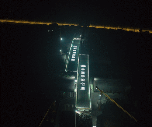 长江日报大武汉客户端10月15日讯 10月14日0时,在武天高速公路(武汉至重庆高速公路武汉至汉川段)项目现场,随着总指挥一声令下,跨沪蓉铁路大桥转体施工启动。