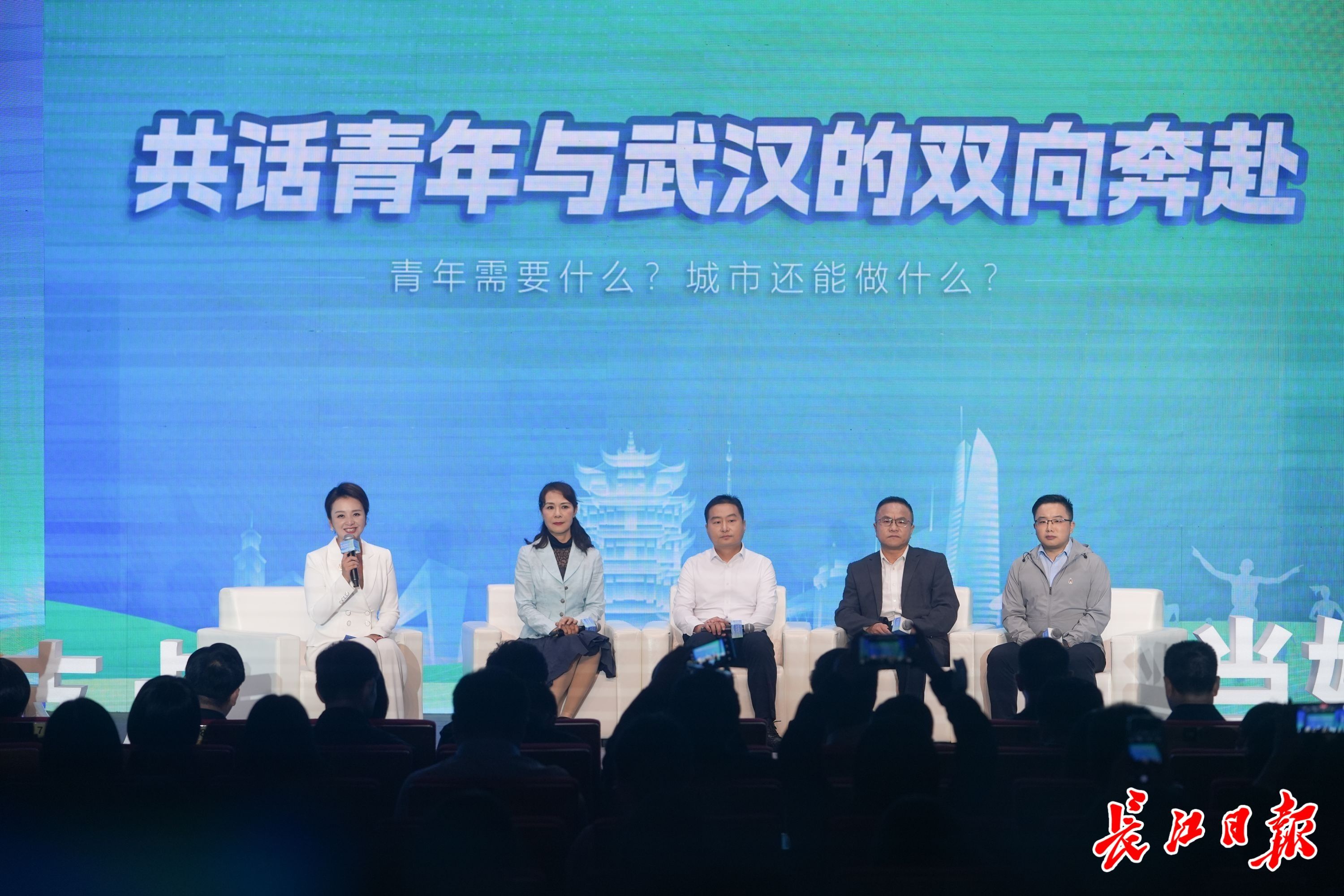 在专场报告会沙龙上,武汉市住更局、科创局、安居集团等单位相关部门负责人、中国青年报代表与高校学子展开对话。