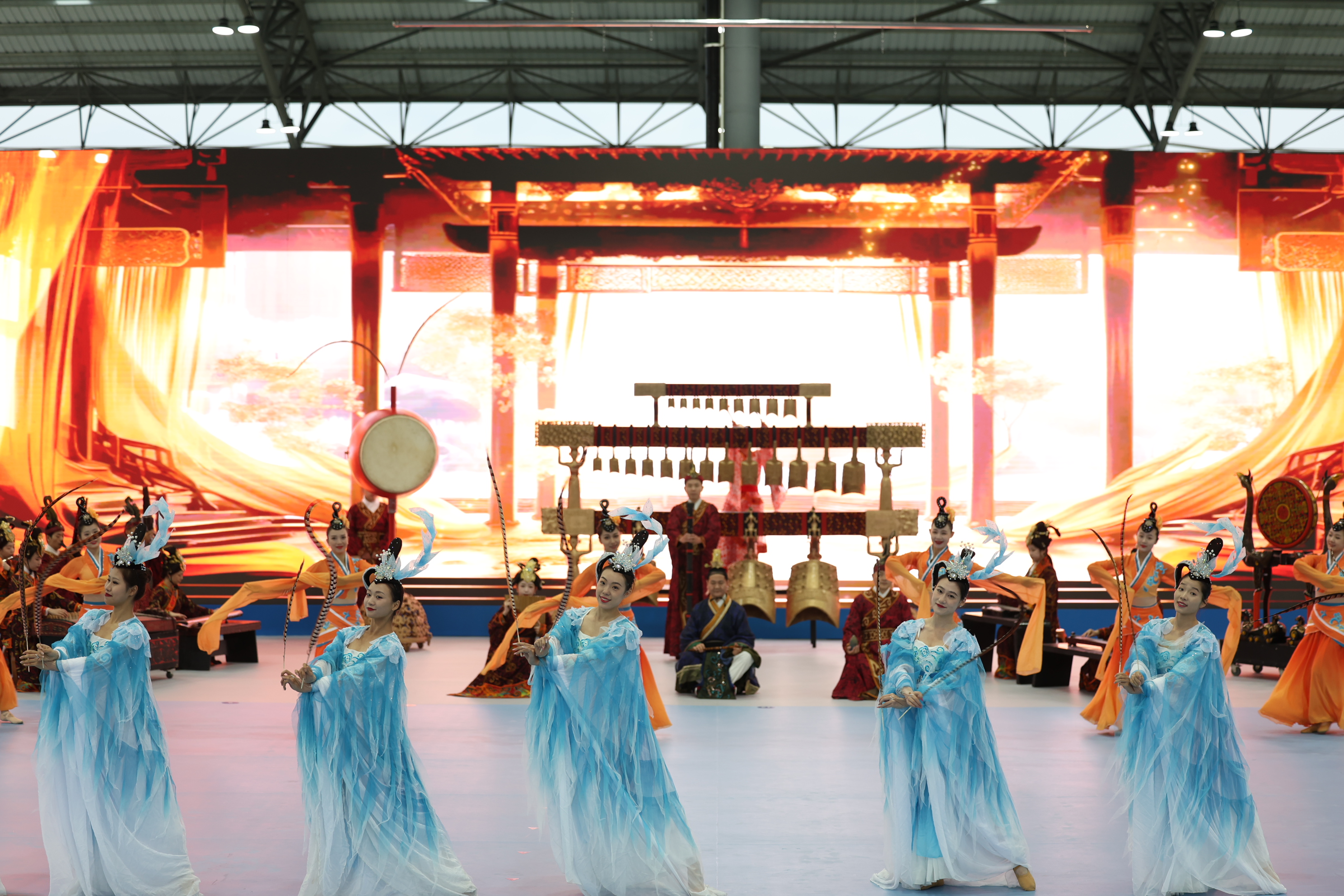 长江日报记者在开幕式现场了解到,在楚舞编钟表演中,文化名家与舞蹈演员密切配合,以复制的曾侯乙编钟为核心乐器,为复原的古代楚国舞蹈伴奏,给观众带来了一场展现荆楚古韵的视听盛宴。《龙船调》是源自湖北恩施土家族的经典民歌,以其旋律活泼、场景生动、表演诙谐而享誉世界,已被联合国教科文组织评为世界25首优秀民歌之一。《楚宫妙舞》是一台以古代楚国宫廷乐舞为题材,再现中国先秦时期楚国宫廷艺术辉煌与浪漫的经典舞蹈节目。