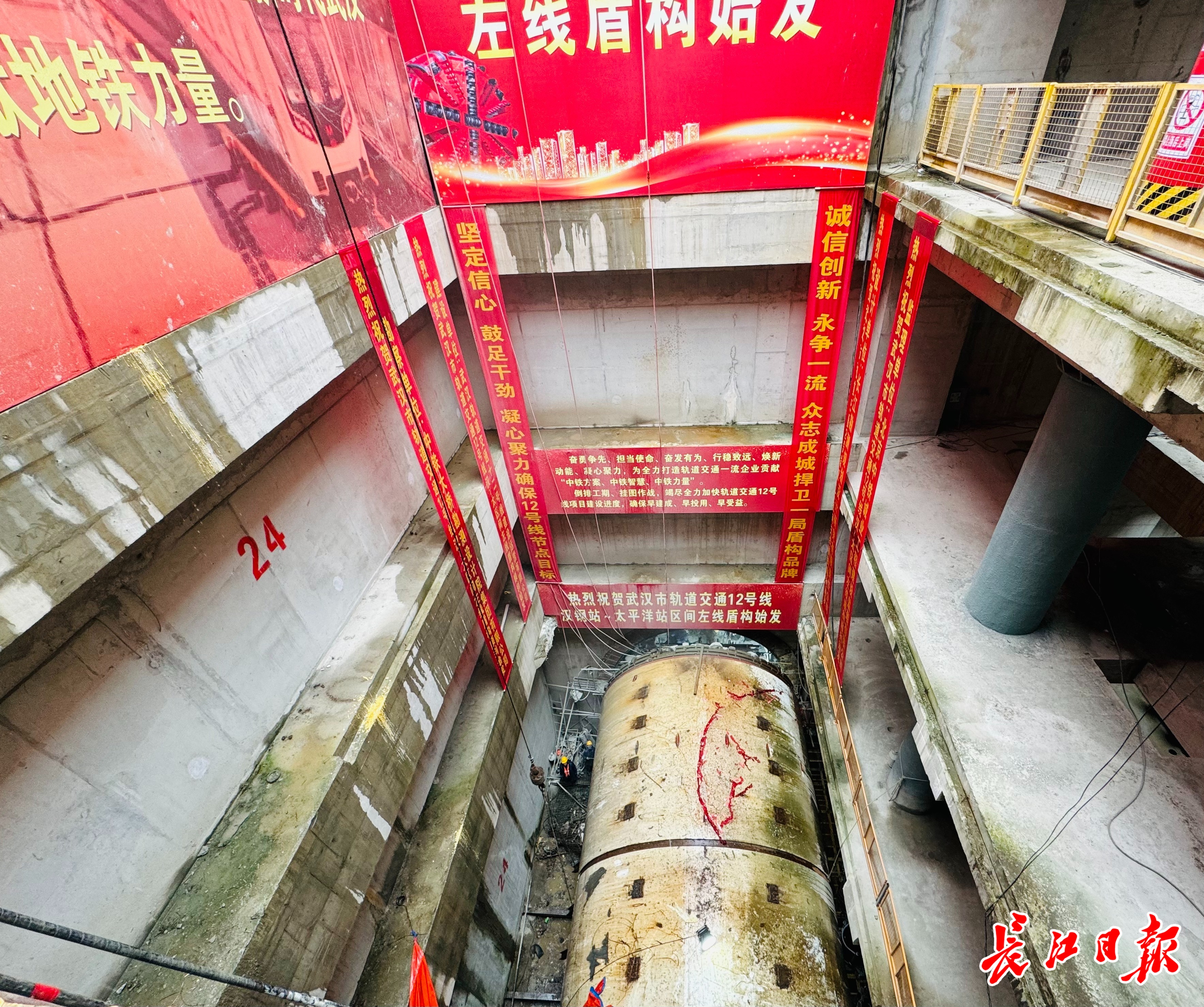 12号线汉钢站至汉西路南站区间左线隧道盾构机始发。长江日报记者陶常宁 摄