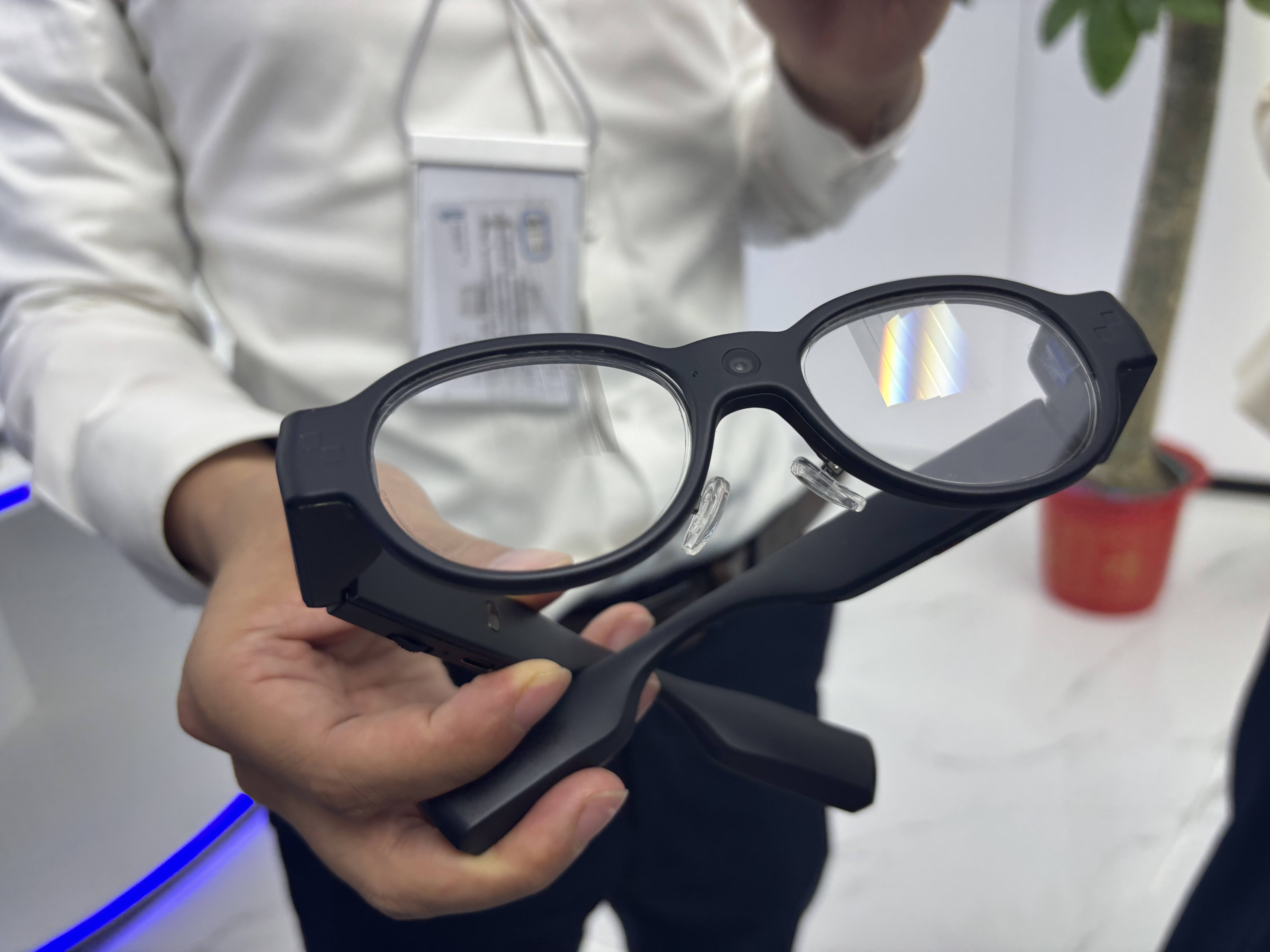 臣博视自主研发的双目全彩光波导一体式AI+AR智能眼镜。栾嘉雯 摄