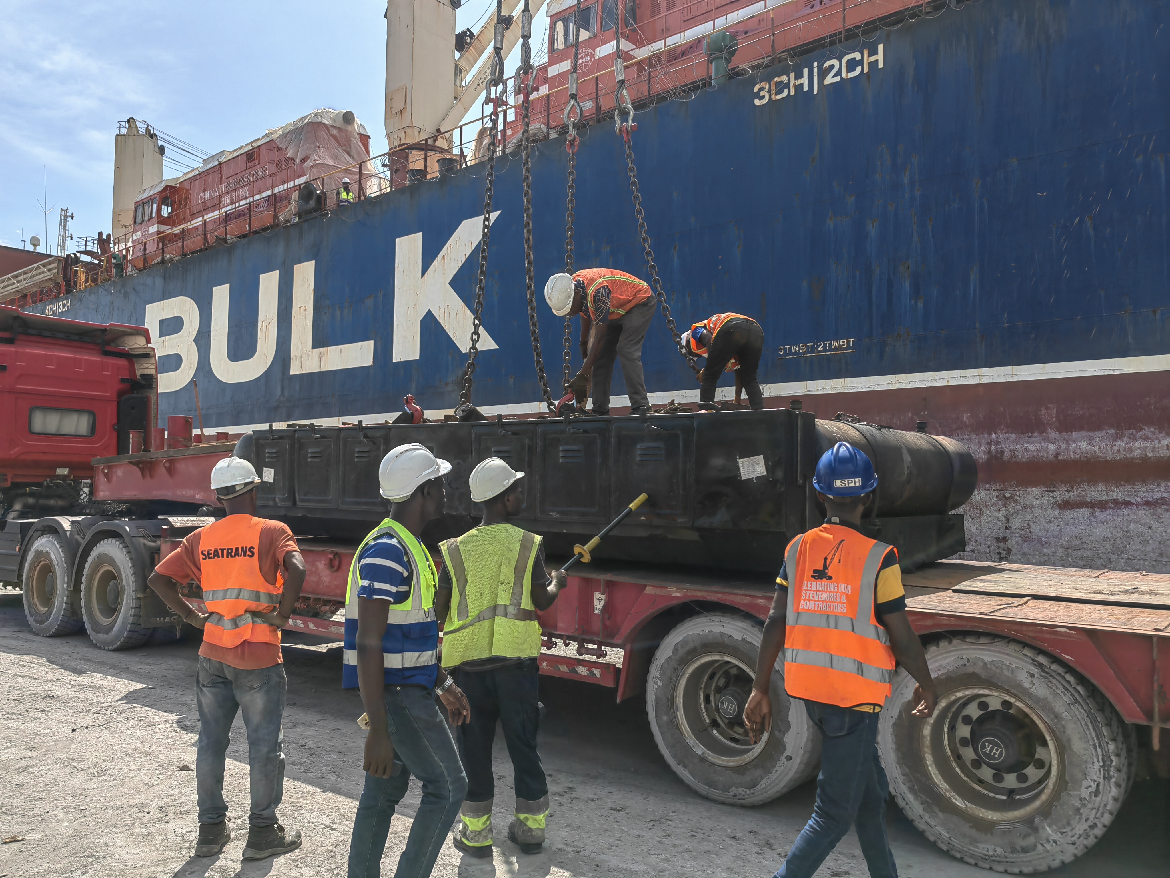 武汉锦华盛3台机车抵达后在利比里亚进行装卸作业。 通讯员供图。
