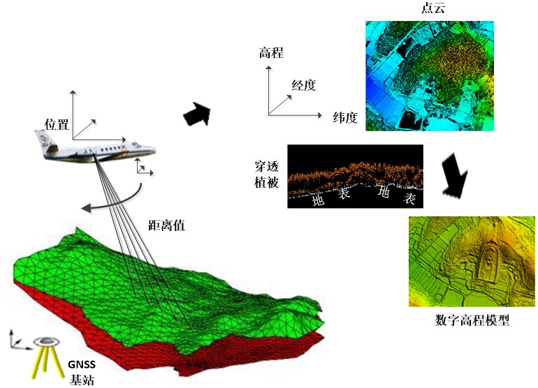 采集的点云数据到获得数字高程模型简易过程和八岭山古墓的分布。