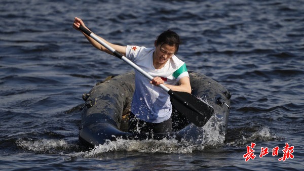 中国运动员在参加两栖越野赛。记者何晓刚 摄