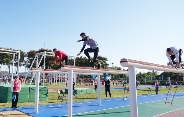 运动员在障碍接力赛中。 记者何晓刚 摄