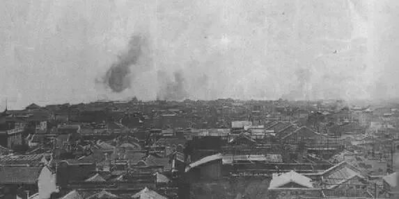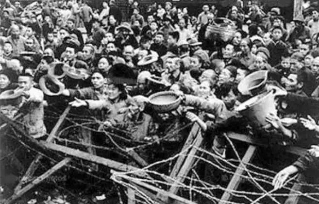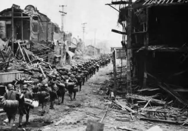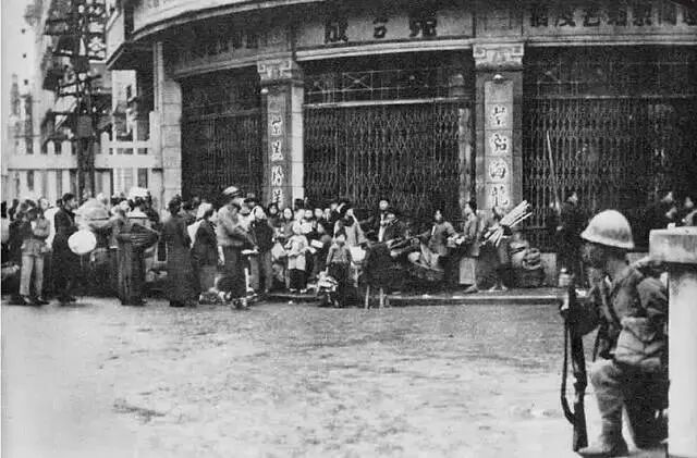 日军占领下的汉口中山大道,无辜的民众被手拿刺刀的日军驱赶。