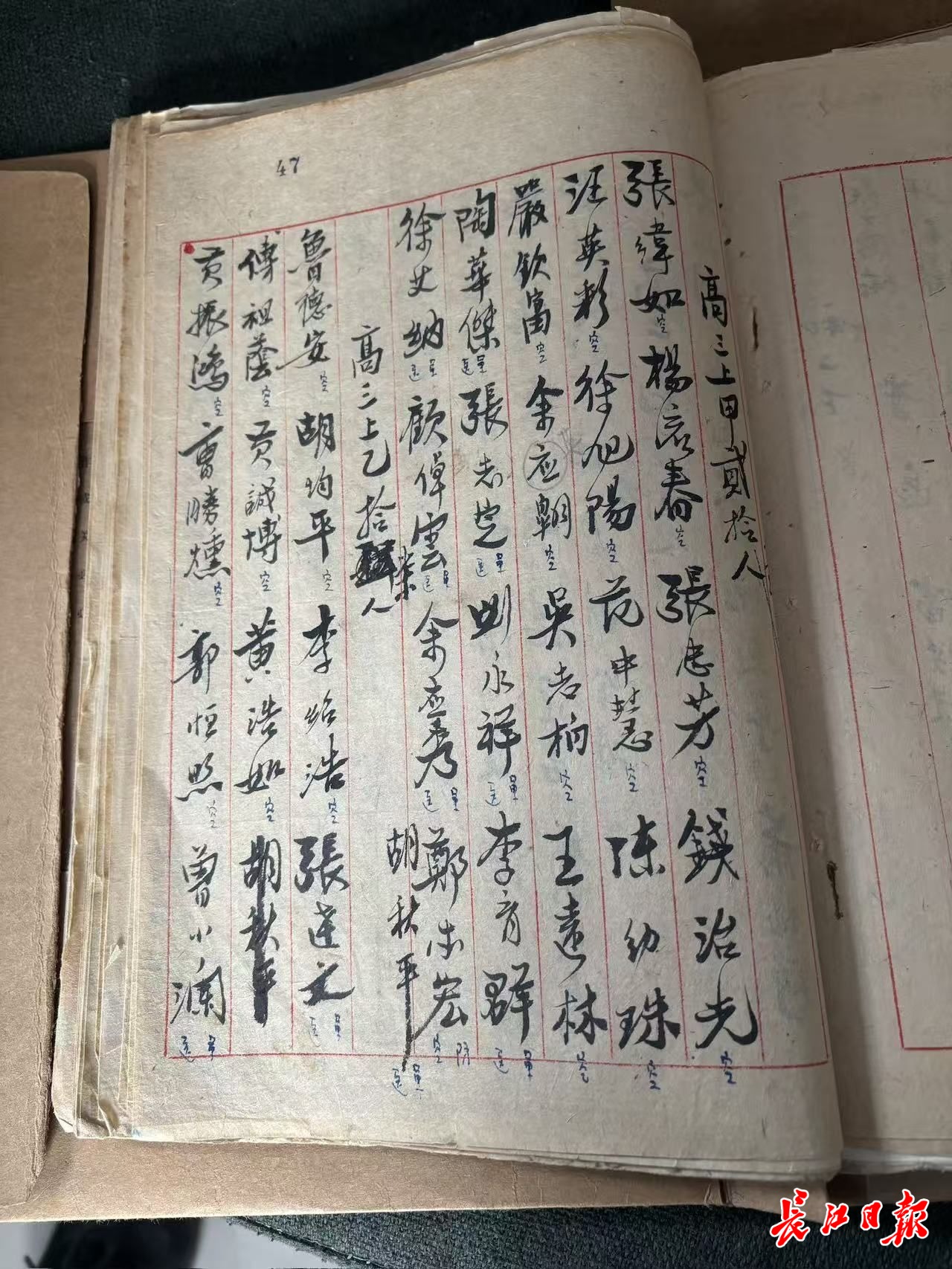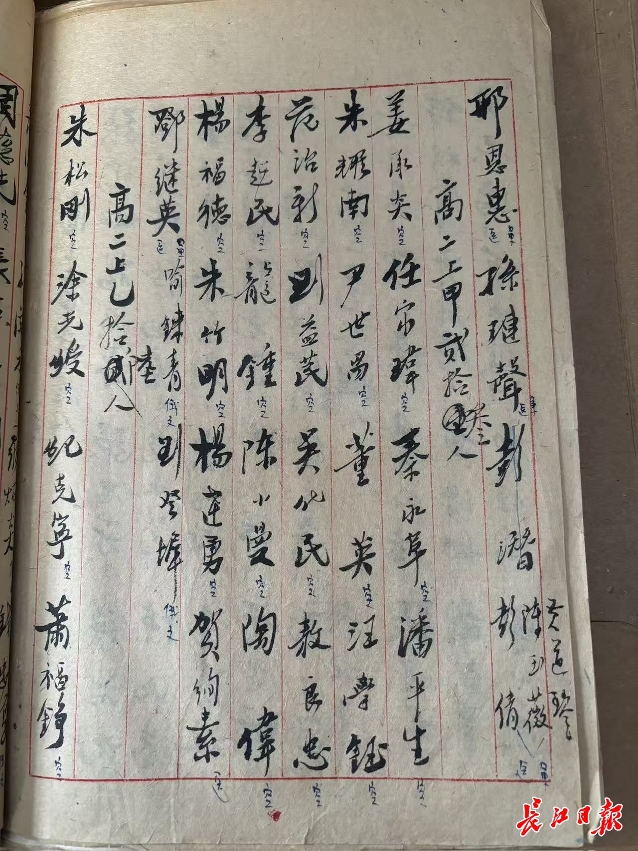 湖北省武昌实验中学保存的一份档案(1950-1951年),记载了三百余名学子参军的信息。 记者耿珊珊 摄