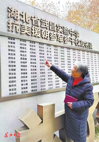 湖北省武昌实验中学抗美援朝参军参干校友名录墙。 通讯员粟毅 摄