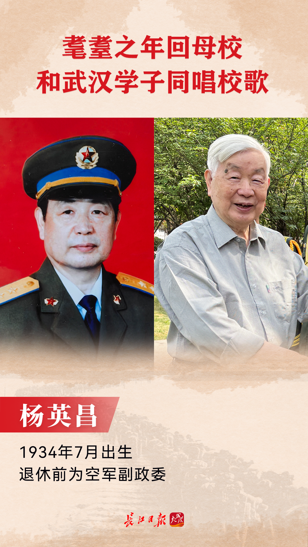 “上一次回母校还是在1990年,一晃35年了。”今年4月25日,91岁的空军老兵杨英昌在亲属陪同下,重回母校省实验,追忆从武汉参军的难忘瞬间,还和在校师生唱起了校歌《凤凰山下》。