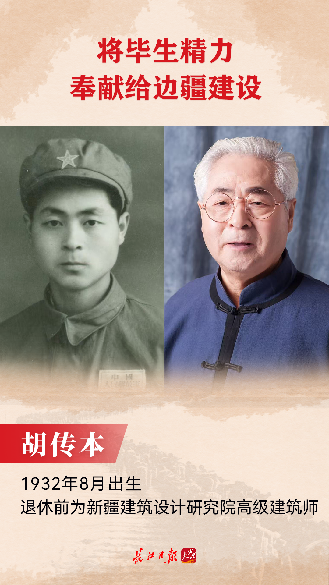 胡传本1932年出生于武汉。1950年12月,正在省实验读高一的他投笔从戎。入伍后,他奔赴新疆军区俄文学校学习,后来又学习建筑设计技术。