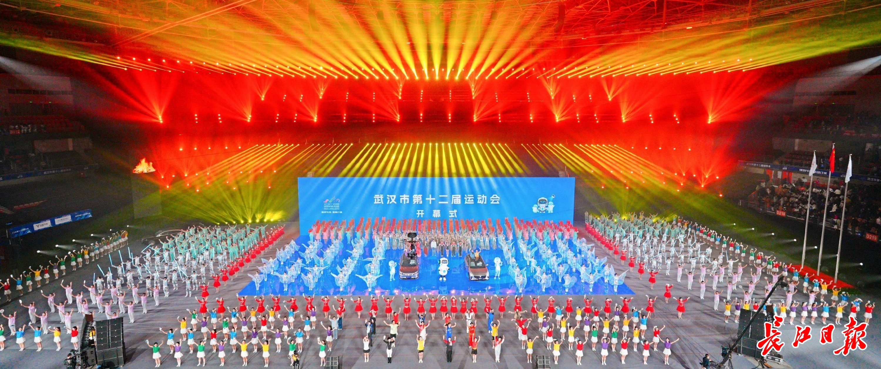 智能汽车驶入舞台巡游,机器人化身火炬手,AI生成的长江江豚接力运动员点燃主火炬……10月25日晚7时,武汉市第十二届运动会开幕式在武汉经开区武汉体育中心举行。一场融合科技与艺术的视听盛宴,展现出“创新武汉”的特色,点燃了全场约5000名观众的热情。