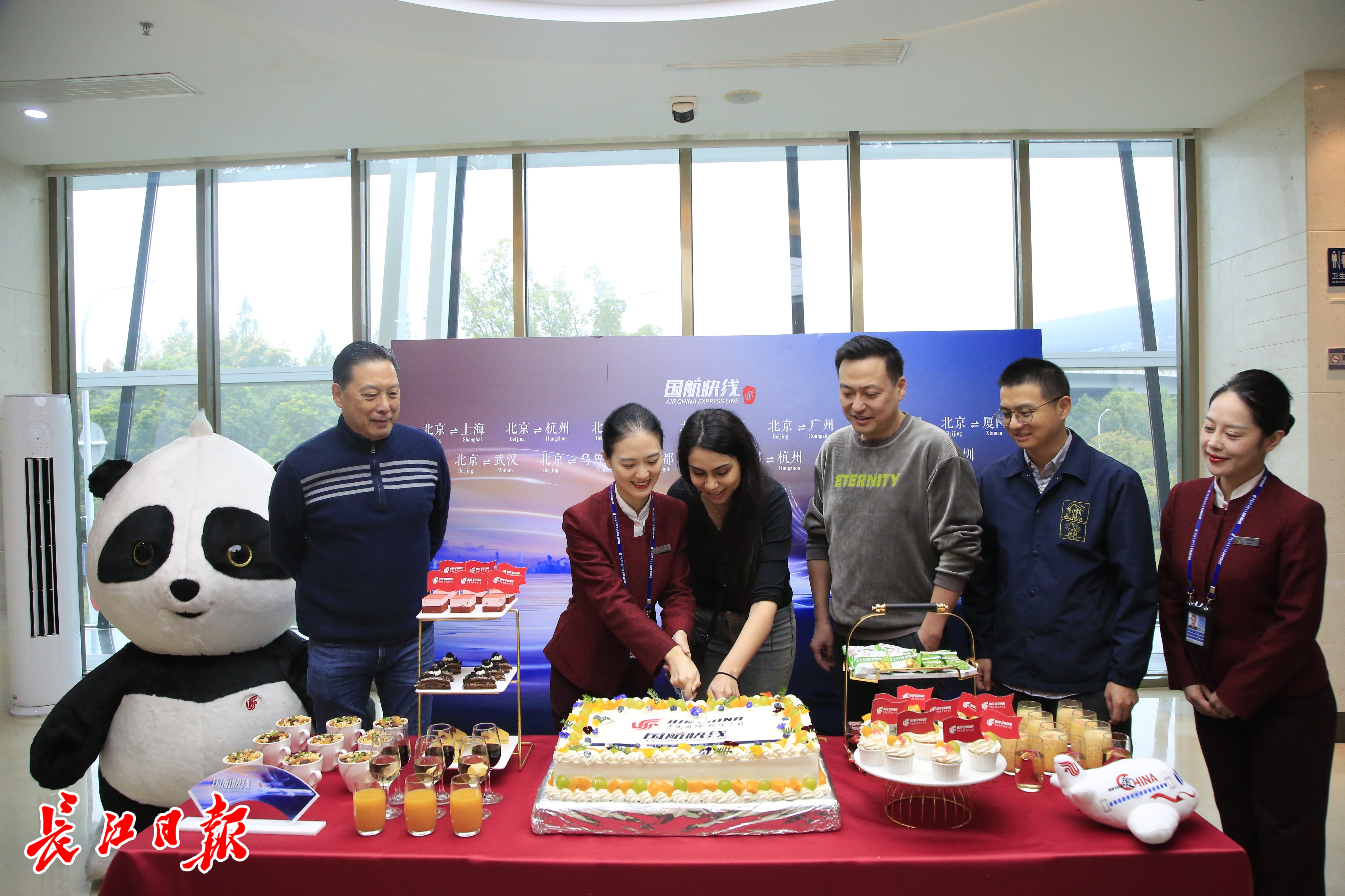 国航“武汉—北京首都”快线首航仪式。 记者汪文汉 摄