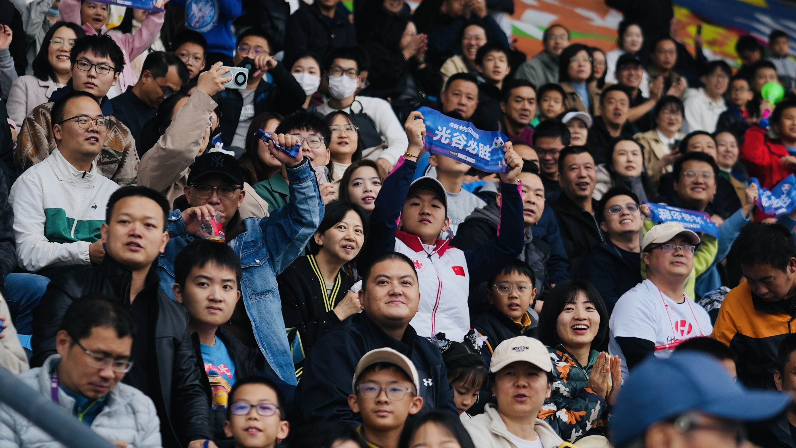 26日,主场球迷打出小横幅支持东湖高新队。