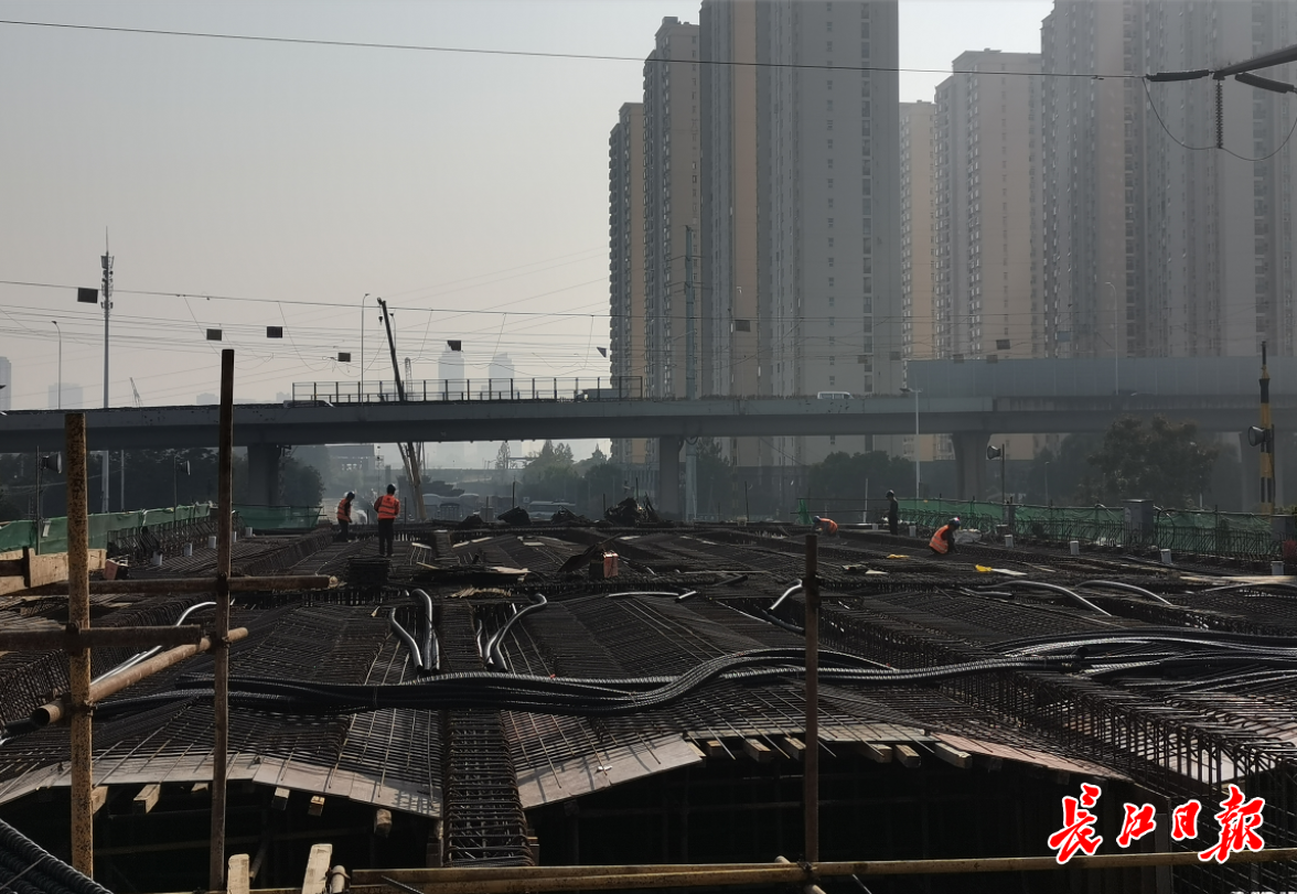 武汉天创建设集团江汉十桥汉阳接线工程项目总工胡志宏介绍说,他们负责新建高架桥,包含4联主线桥与两处匝道,其中有一联钢箱梁将下穿三环线高架,项目施工部分周边有许多工业园,天上有高压线,地下又有各种强电和燃气管道等管线,施工时难度比较大。项目施工时,需要根据管线情况变更和调整设计方案,即时调整桥梁桩基位置,保证桥梁受力结构稳定。该接线工程预计2026年12月全部完工。