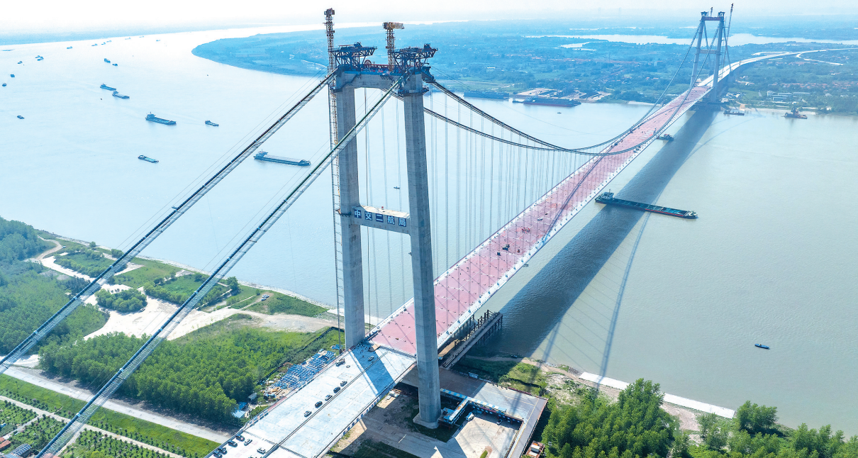 2025年7月26日,武汉双柳长江大桥精准合龙。作为国家高速路网武汉都市圈环线的重要组成部分,双柳长江大桥通车后将进一步拉近鄂州与武汉的距离,助力区域经济增长。新华社记者肖艺九 摄