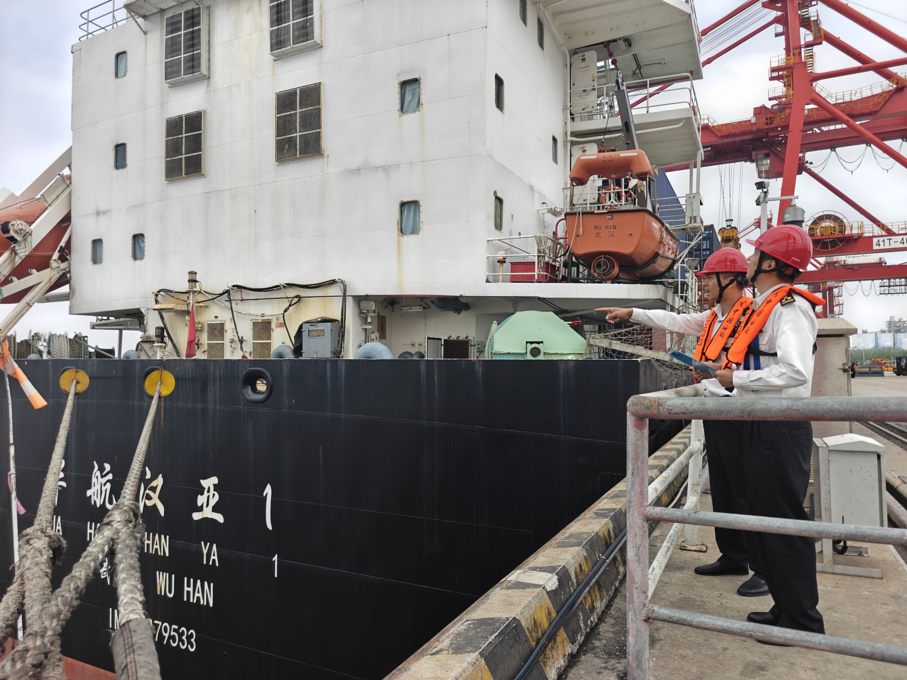 与此同时,江海直航也一派繁忙景象。在阳逻港一期码头,汉口出入境边防检查站民警正为“华航汉亚”2号货轮办理前往韩国釜山的出境手续。“除传统的无纺布、化工品、农副产品、汽配等,今年还增添了新能源汽车、锂电池等‘新三样’产品。”武汉新港大通公司相关负责人兴奋地说。