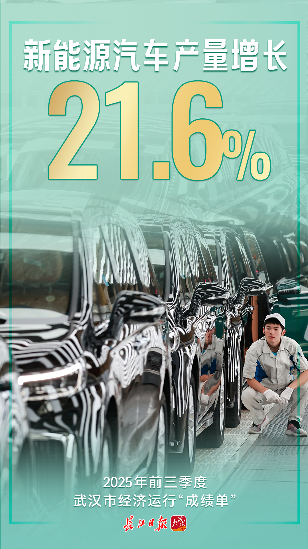今年前三季度,武汉新能源汽车产量同比增长21.6%,高端制造、智能制造持续成为经济增长的“硬核引擎”。