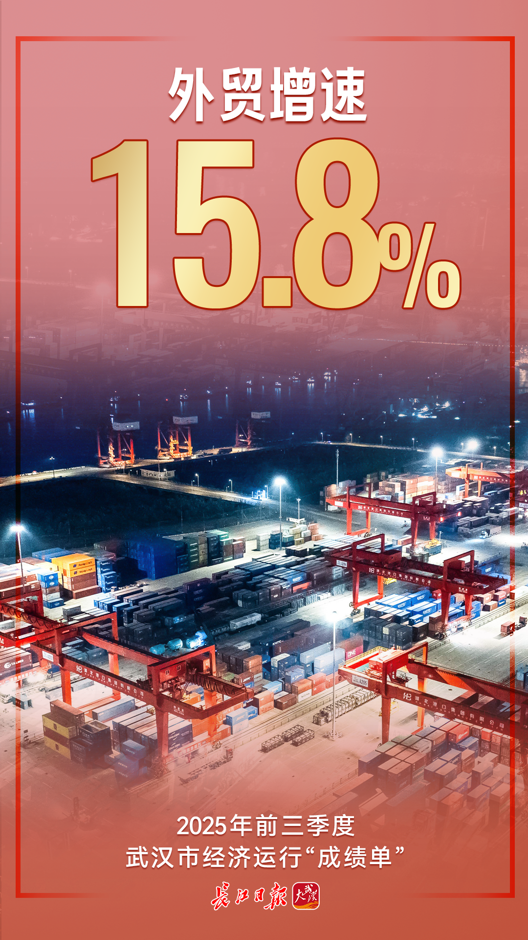前三季度,武汉市进出口总值达3369.6亿元,同比增长15.8%,占湖北省进出口比重54.6%,展现出强劲的外贸发展潜力。