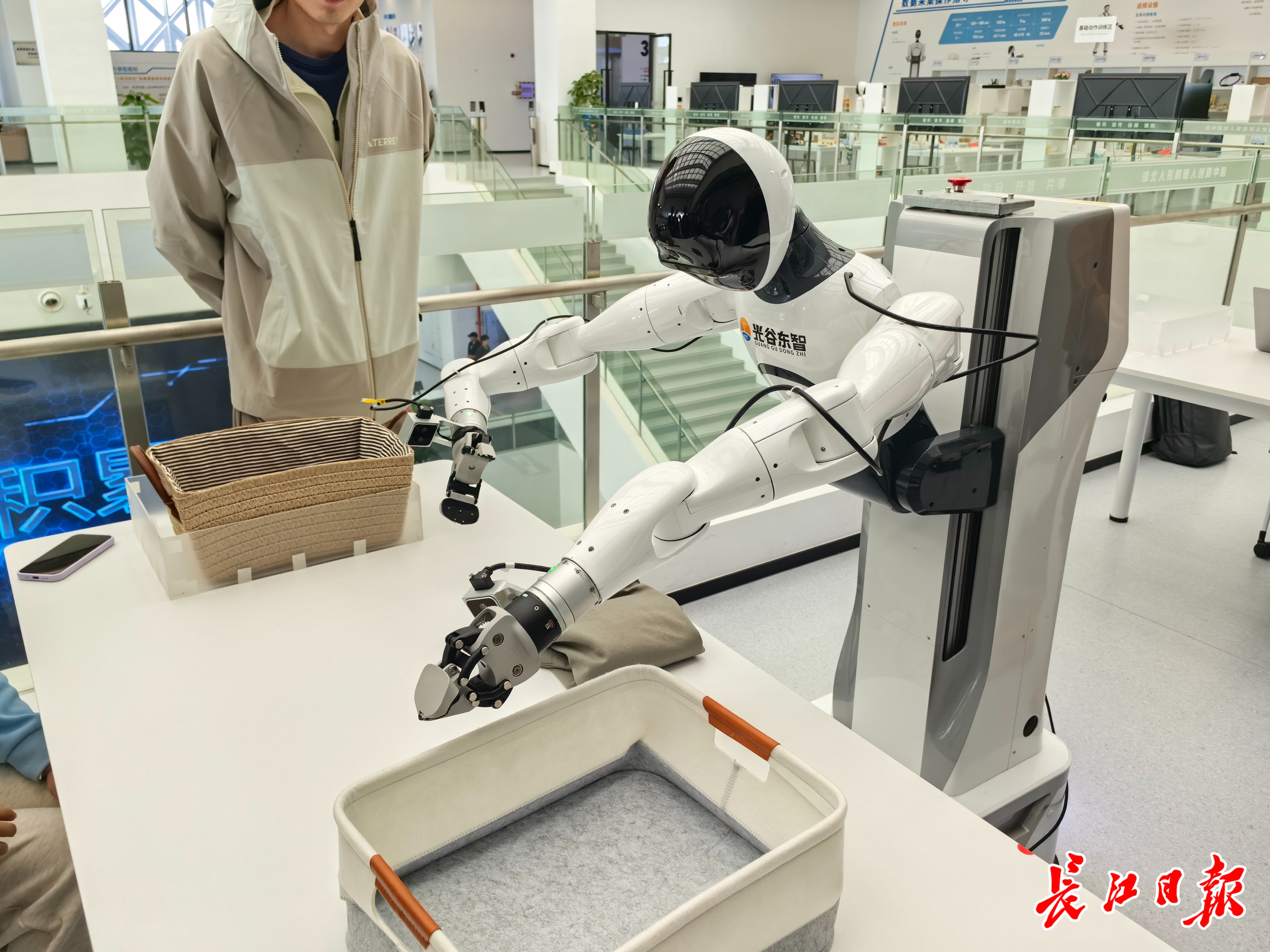 具身智能机器人能自主叠衣服。记者覃柳玮 摄