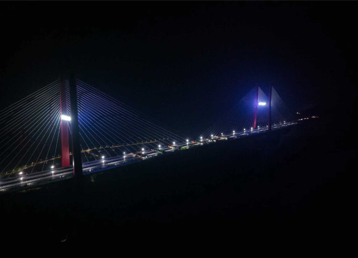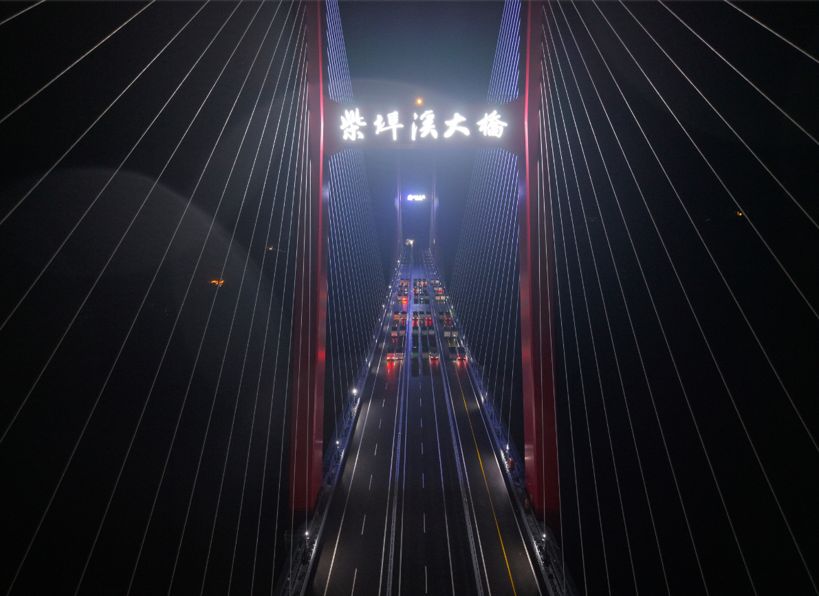 宜来高速公路是湖北省高速公路网规划“七纵五横三环”中“五横”的重要组成部分,也是湖北省提出的打通三大都市圈断头路、瓶颈路之一。由中交二航局承建的柴埠溪特大桥位于宜昌市五峰土家族自治县,是全线重点控制性工程,采用“双向4车道高速公路+双向2车道省道”建设,是湖北省境内首座省道与高速公路同层共建的斜拉桥,主桥全长904米,主跨480米,桥面宽44.5米。该桥也是世界最宽双边工字钢组合梁斜拉桥。