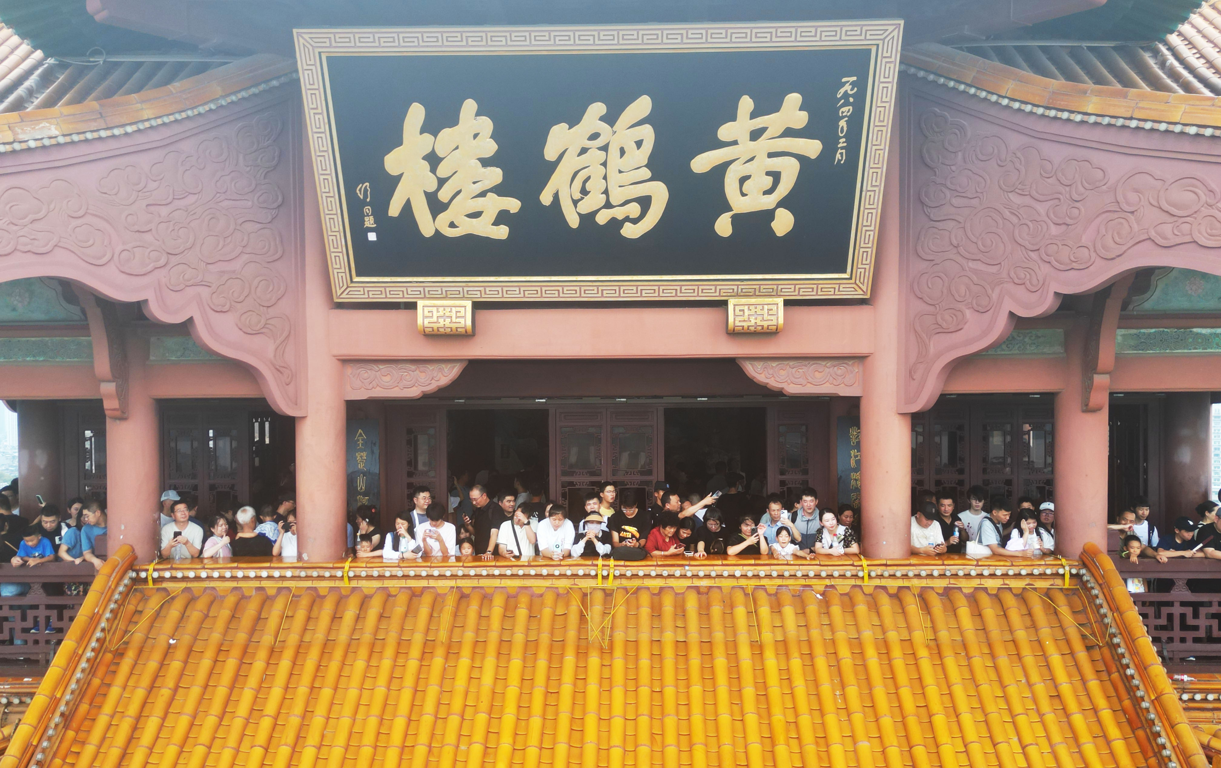 今年国庆中秋长假期间,黄鹤楼人流如织。资料图片