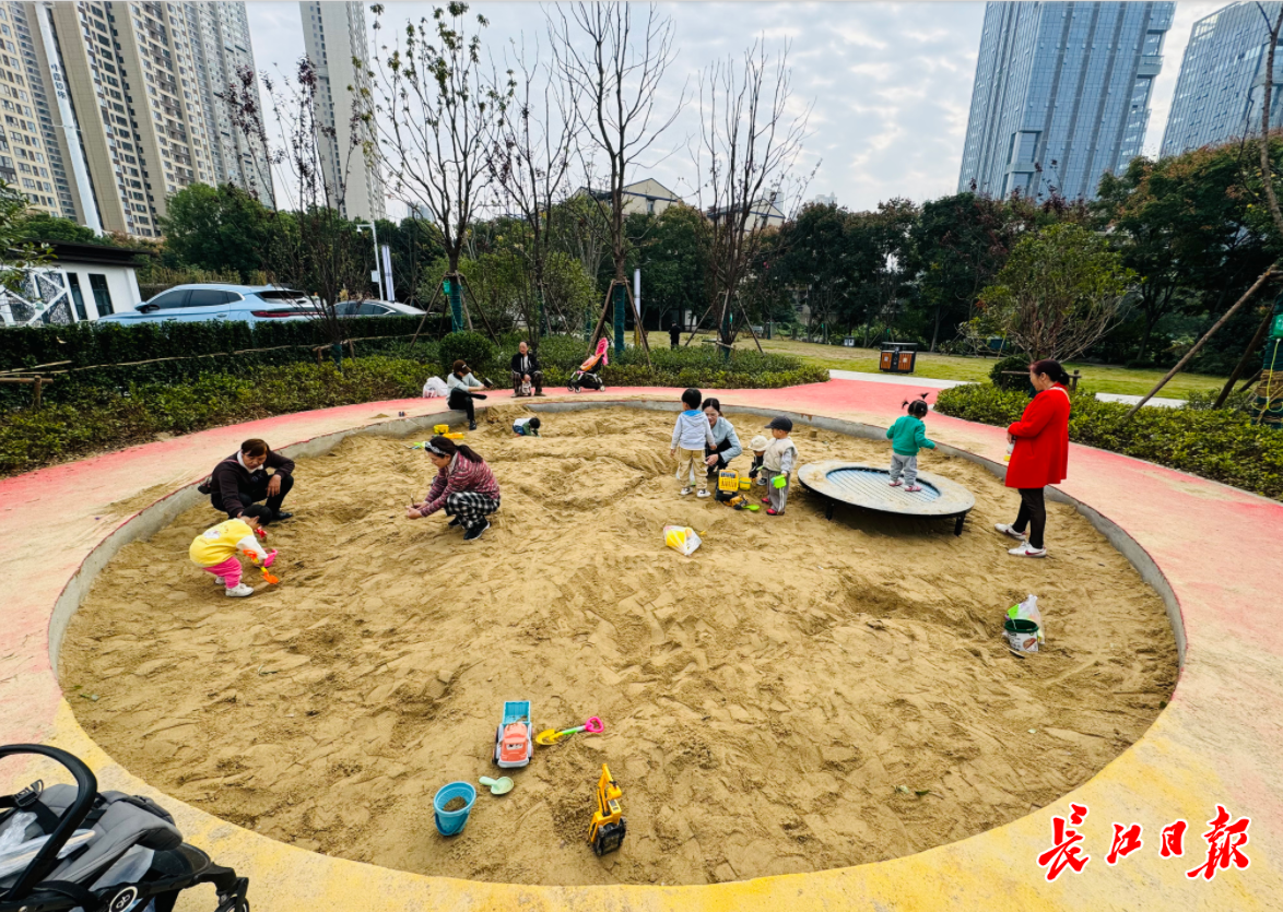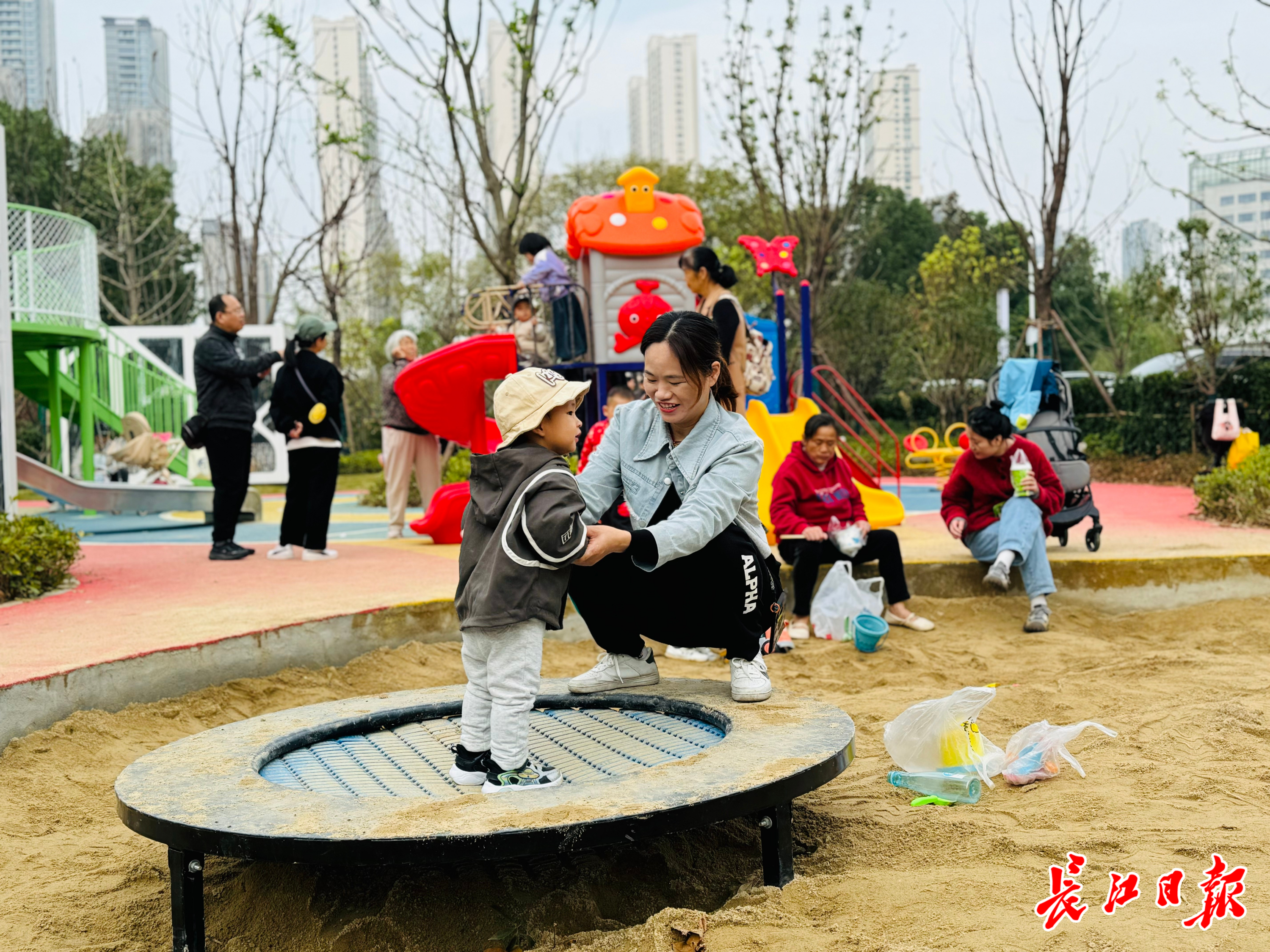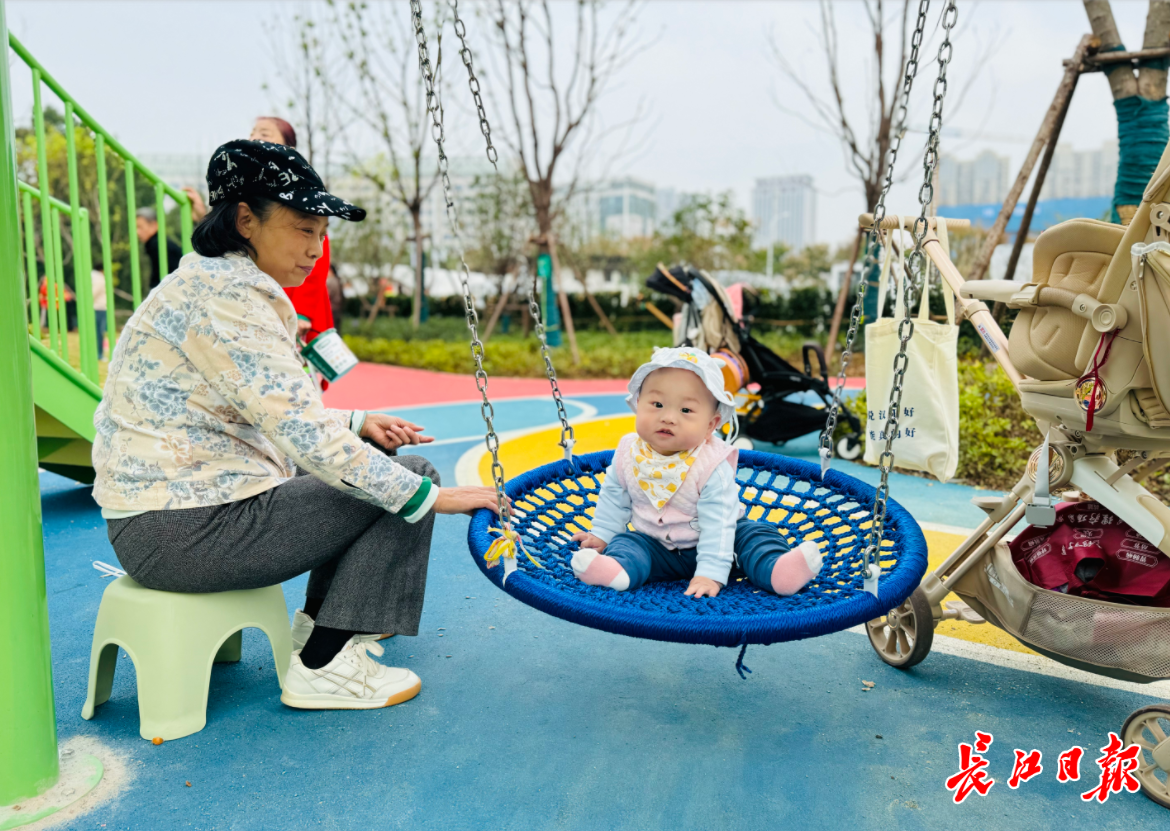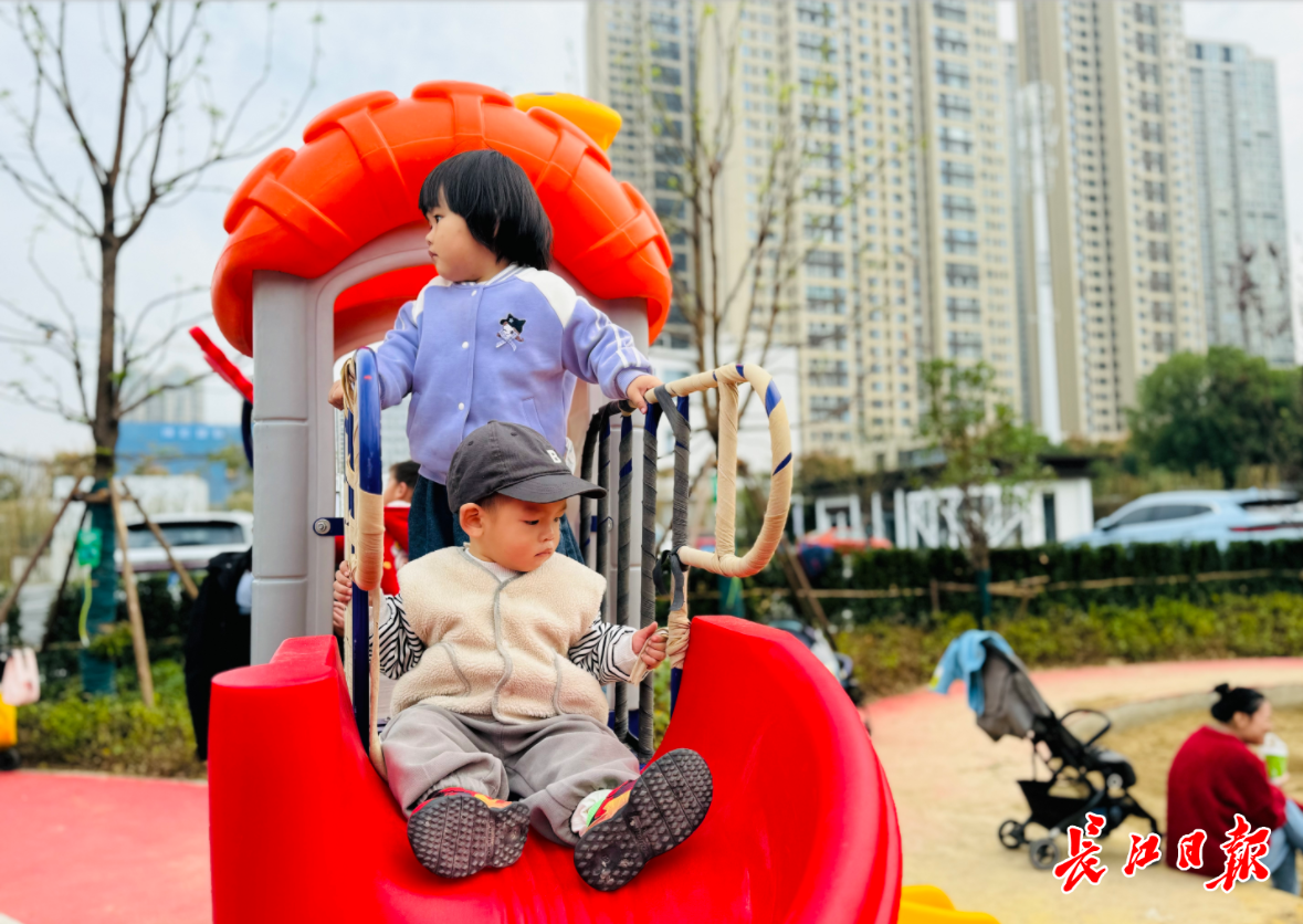 11月3日上午,众多家长带着孩子前来游玩。况清家住汇福园C区,她的孩子刚满1岁9个月。“我在这里住了十年,以前带孩子想找一个游乐场,至少要走两三公里。现在出了门5分钟就能到,只要天气好,每天都要出来转转。”秋千、滑滑梯、跷跷板等设施吸引了许多孩子和家长,游乐园里到处都是欢声笑语。