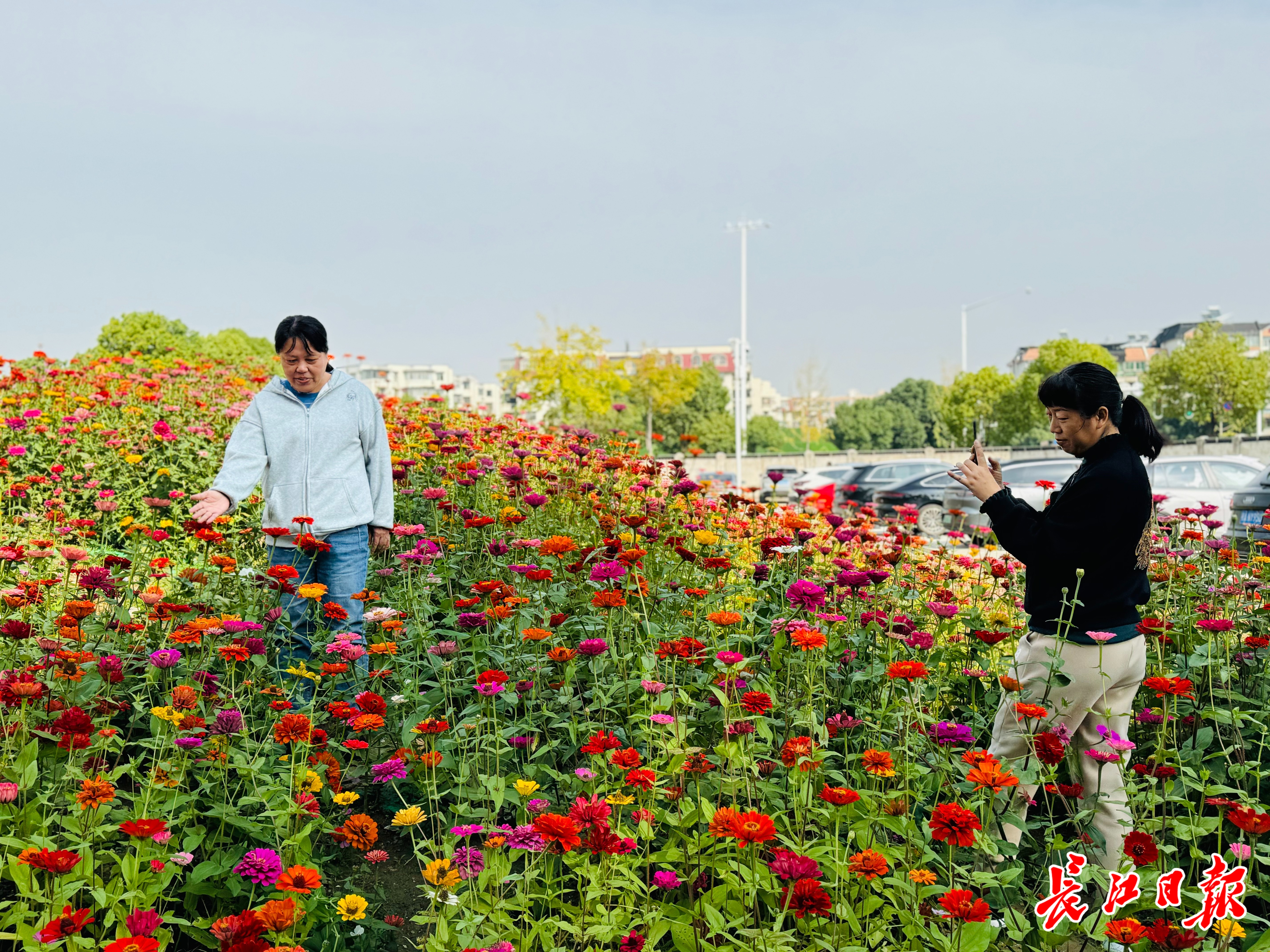 停车场花海成为居民拍照点。记者陶常宁 摄