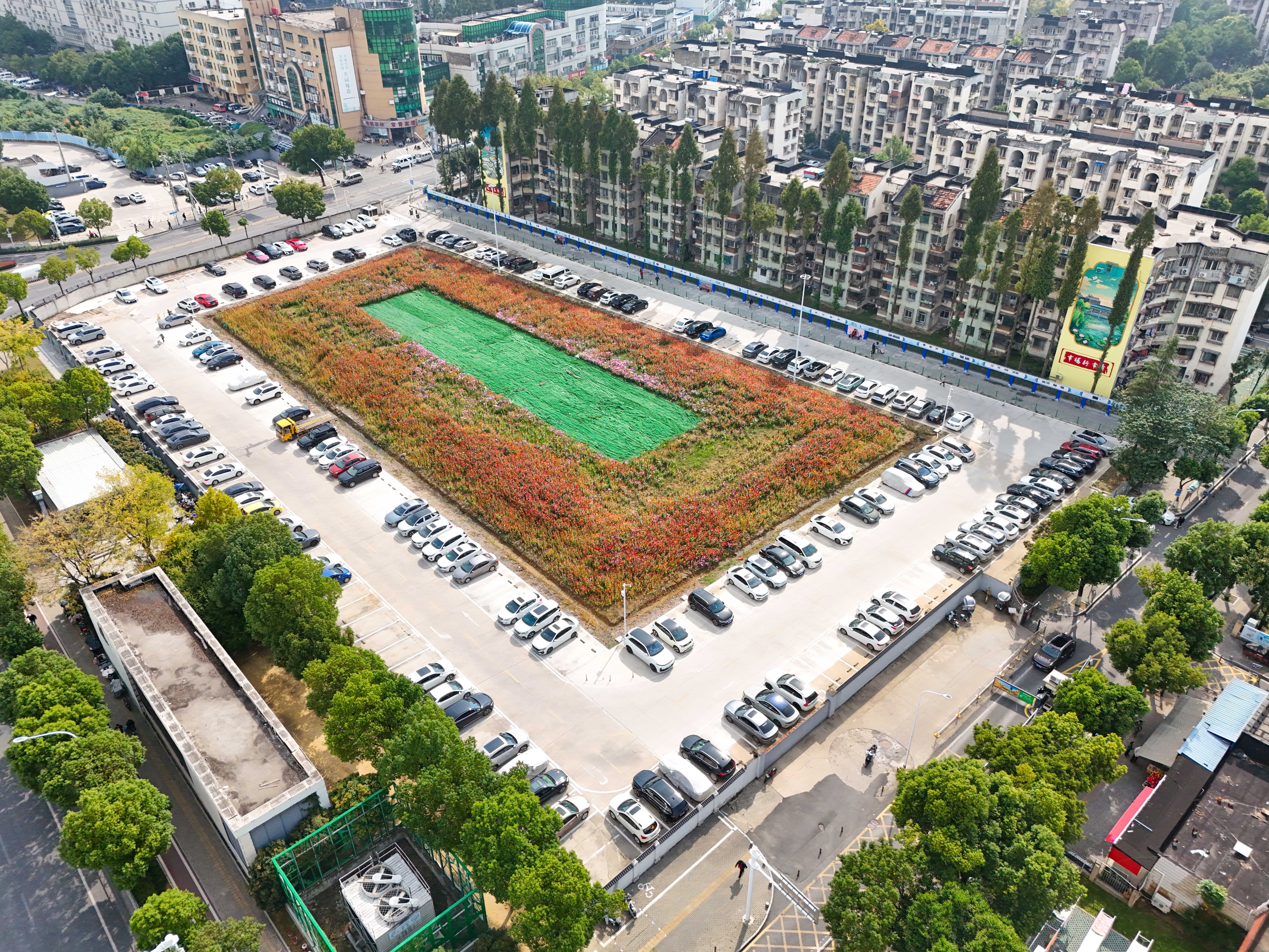 停车场中央,一片百日菊竞相绽放,形成美丽的花海。常青花园社管办城市管理科科长张扬介绍:“停车场投用后,我们积极收集居民意见建议,了解到大家不仅希望停车便利,也希望环境更加优美。因此,我们确定了‘添绿、增彩、加温情’的改造方向。”