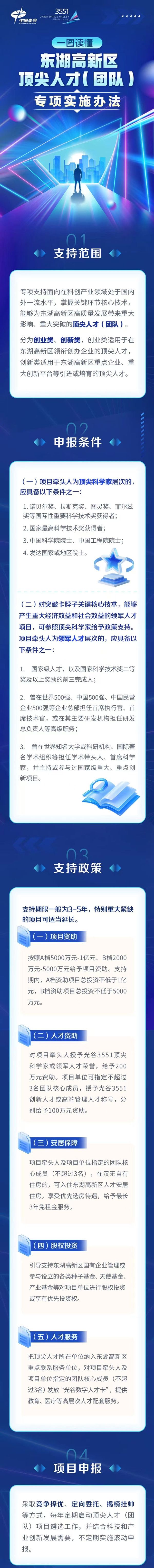 据介绍,东湖高新区每年将定期启动顶尖人才项目集中申报,采取竞争择优、定向委托、揭榜挂帅等灵活方式,常态化支持顶尖人才项目落地。