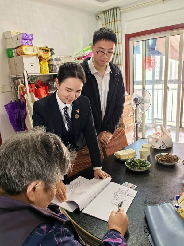 去年春天,社区里发生的一件事让王涯玲至今记忆犹新。一位老人急匆匆来到社区,眼含泪水告诉她,因为家庭变故,一笔30万元的银行存款无法取出。王涯玲立刻想到了在武汉市尚信公证处工作的下沉党员李博。