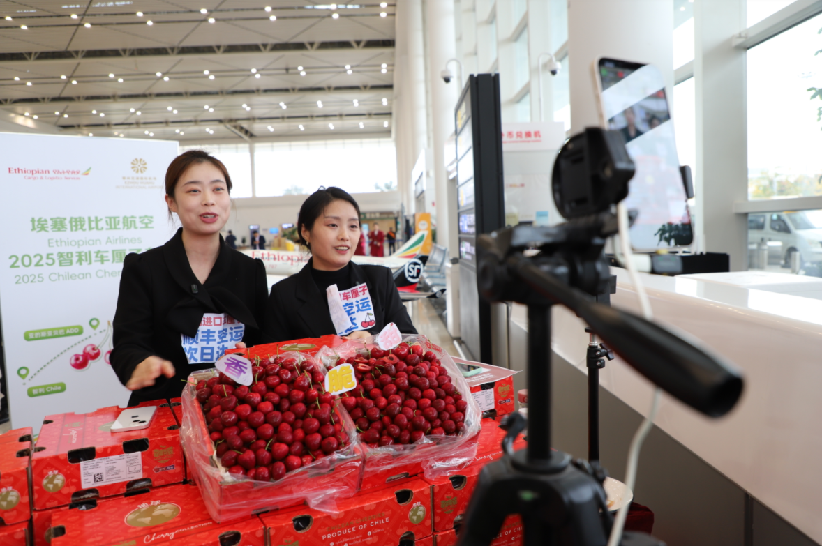 这批车厘子是智利2025—2026年度车厘子季的首批空运产品,从智利首都圣地亚哥出发,经停埃塞俄比亚亚的斯亚贝巴,历经近25个小时的飞行,跨越2.1万公里航程远道而来。据悉,该航线每周将有3至5个定期航班。