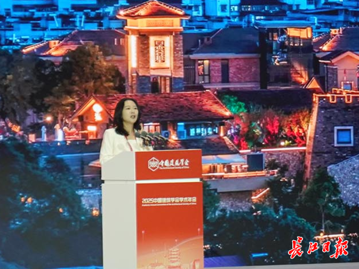 武汉古城壹禾商业运营管理有限公司负责人廖芳在2025中国建筑学会学术年会上作报告。
