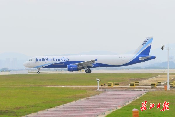 印度靛蓝航空6E8552次全货机在花湖机场跑道滑行。 记者史伟摄