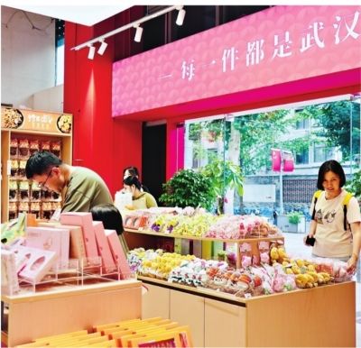 在武汉礼物泛悦汇昙华林旗舰店,超500款特色名优商品汇集,成为目前全市品类最全、规模最大的武汉礼物门店。店内依据街区特色,重点推出昙华林系列、户部巷主题等文创产品,从明信片、发声玩偶、帆布袋到立体拼图、特色徽章,吸引不少游客驻足挑选。店内专设的“武汉十大伴手礼”区商品丰富,蔡林记热干面、周黑鸭“谢谢礼”礼盒、悦游文创黄鹤楼旋转灯、新三舍东湖四季花香薰、仟吉与黄鹤楼联名款绿豆糕等一应俱全。