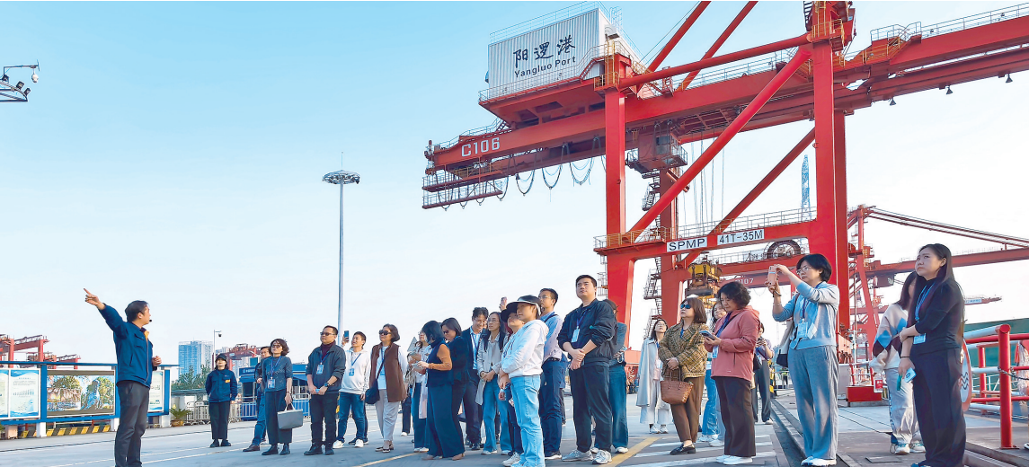 11月14日下午,武汉市“建设支点 当好龙头”系列形势政策宣传教育活动走进长江新区。由市直机关干部和市民网友代表组成的“城市观察团”来到中远海运智慧码头和阳逻港铁水联运一期示范基地,体验武汉“九州通衢”的现代商贸物流体系。