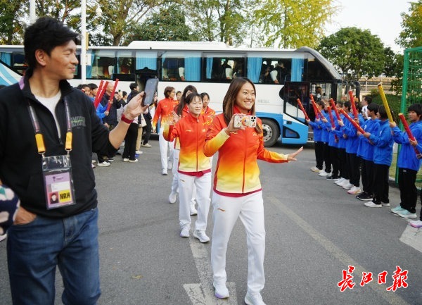16日16时许,满载武汉车谷江大女足的大巴车驶入塔子湖足球训练基地,近百名武汉女足青训小球员们手持鲜花,欢迎大姐姐们归来。这让刚走下全运会赛场的武汉车谷江大女足姑娘们倍感激动,主力中卫吴海燕对小球员们说道:“武汉女足的未来是属于你们的,希望你们今后能为武汉女足、湖北女足创造更好的成绩。”