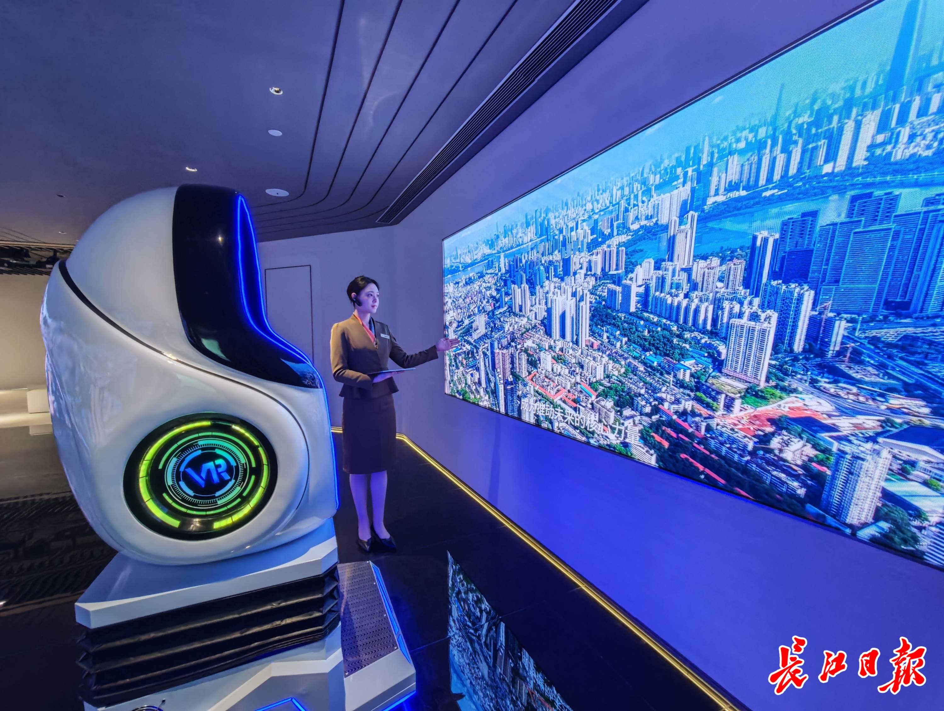 乘上高速电梯,抵达大楼顶层的“城市会客厅”,裸眼3D产品展示区、全息图像柱状屏、360度光影厅、虚拟现实参观区……科技感扑面而来。这里将为入驻企业共享使用。