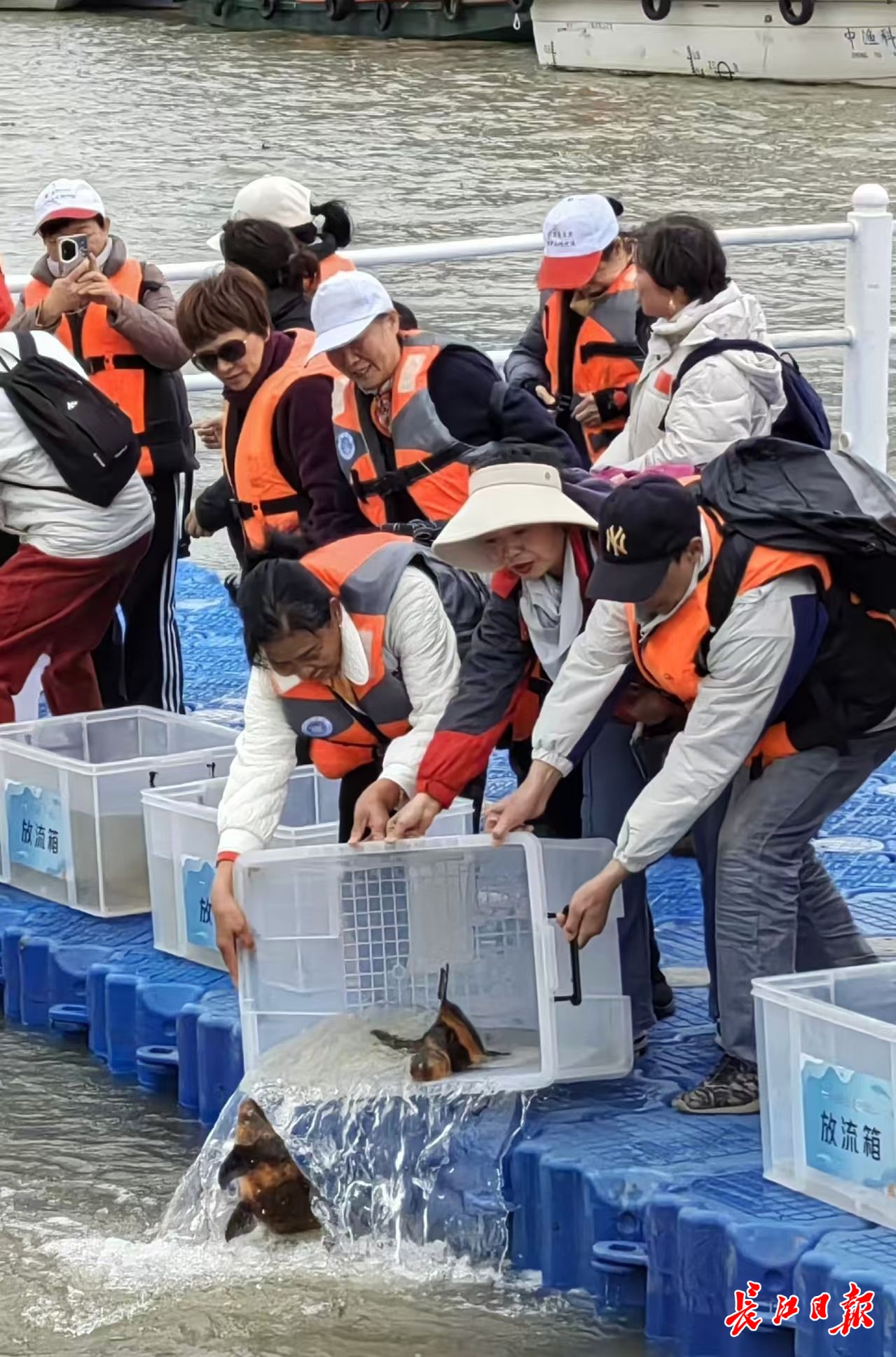 武汉生态志愿者们放流胭脂鱼。长江日报记者金文兵 摄