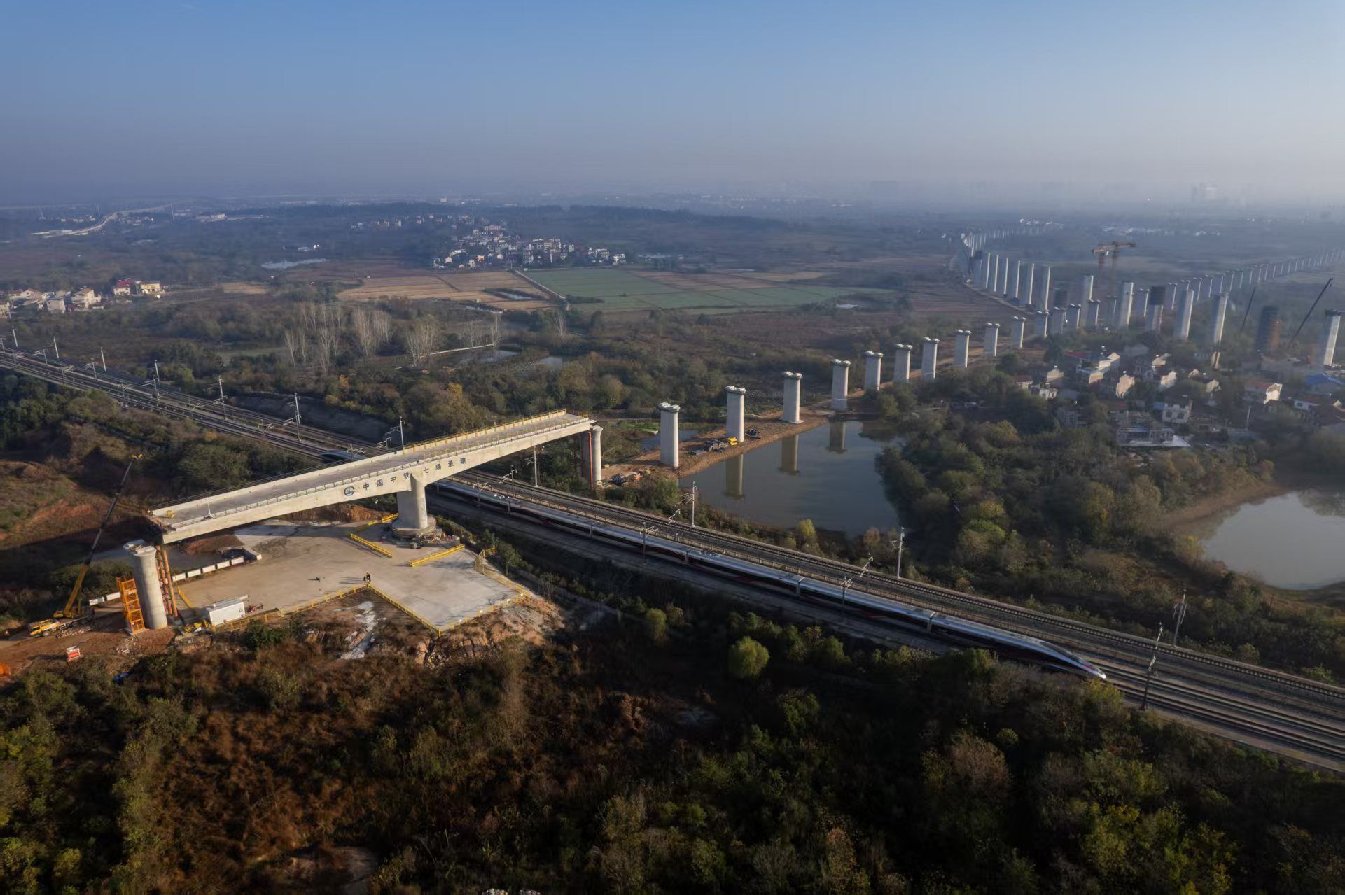新建武汉至合肥高速铁路长江新区至武汉天河段,位于黄陂区境内,正线全长18.018公里,多处涉及邻近营业线作业,施工空间受限且安全风险极高。