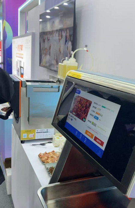 据展位工作人员介绍,这款炒菜机器人内置超过2000道菜谱,每一道菜都配有详细的标准化作业程序。
